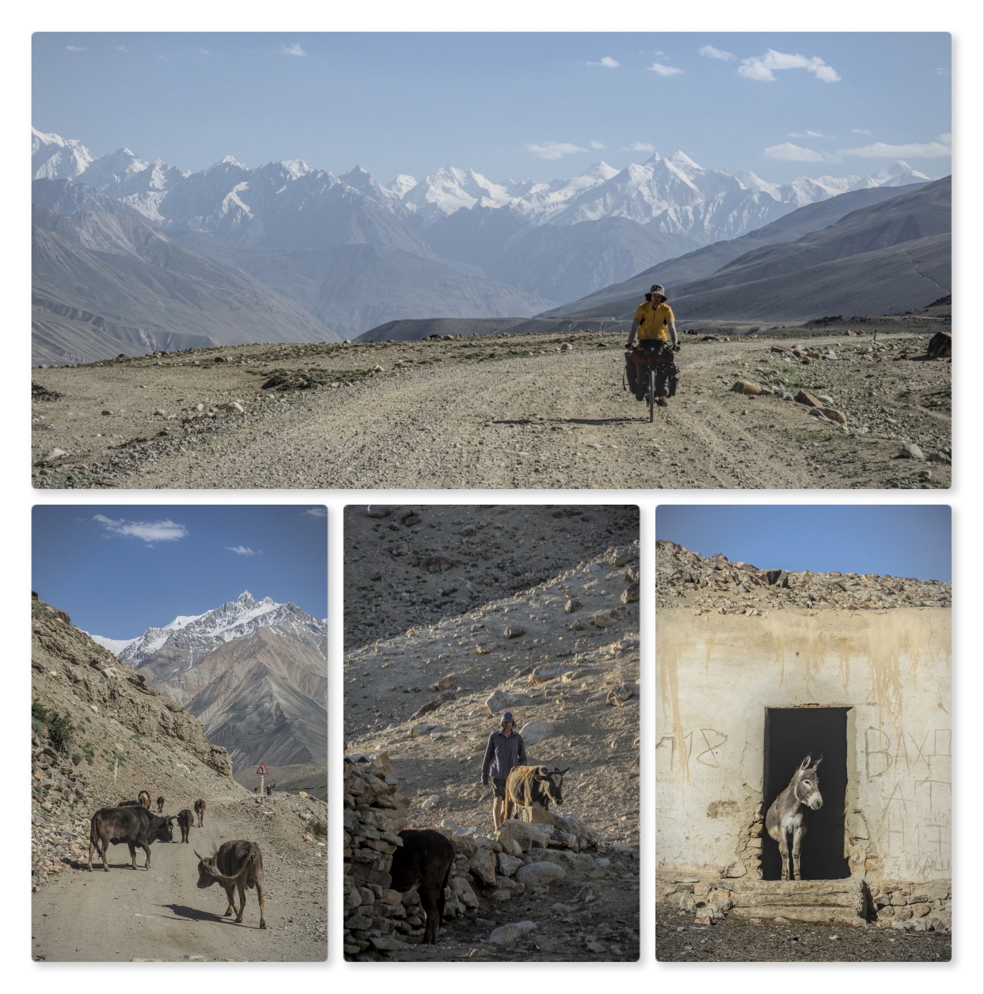 Our first sign of civilisation after a couple of days of tough cycling was a military checkpoint in Khargush. There was supposedly a free shelter we could stay in there to escape from the wind and cold at 4000m. However, the officer there tried to charge hotel prices us for the pleasure of spending the night the stinky hut. Declining there offer we sought other options, but all the buildings we saw were already occupied by donkeys (picture above).