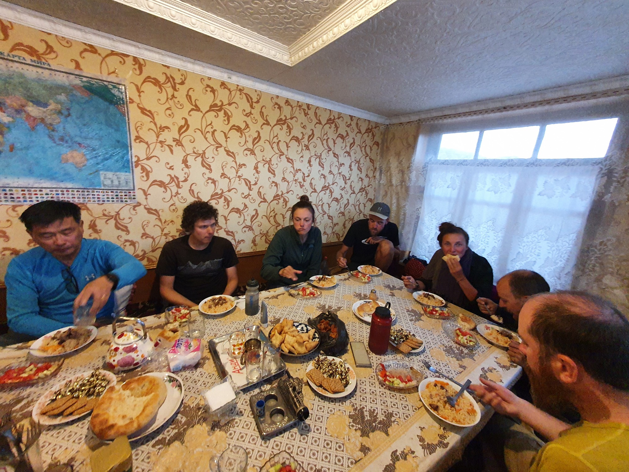 We re-joined Lim in a homestay to eat cream, bread and tea together before finishing the ride to Murghab. Here we met 10 more cyclists all staying in the same homestay, also including Kim from Korea, Henning and Marielle from Germany, Tiana and Joos from Switzerland and Adam and Masha . It was a beautiful little community of people all tackling the same route with plenty of stories to share. Murghab was the biggest town we'd seen since khorog and we were looking forward to lots going on. Unfortunately for us though we had arrived just in time for Eid festival which was on for 3 days, meaning everyone was at home and most of the town was closed, including the container bazaar which I was excited to see.