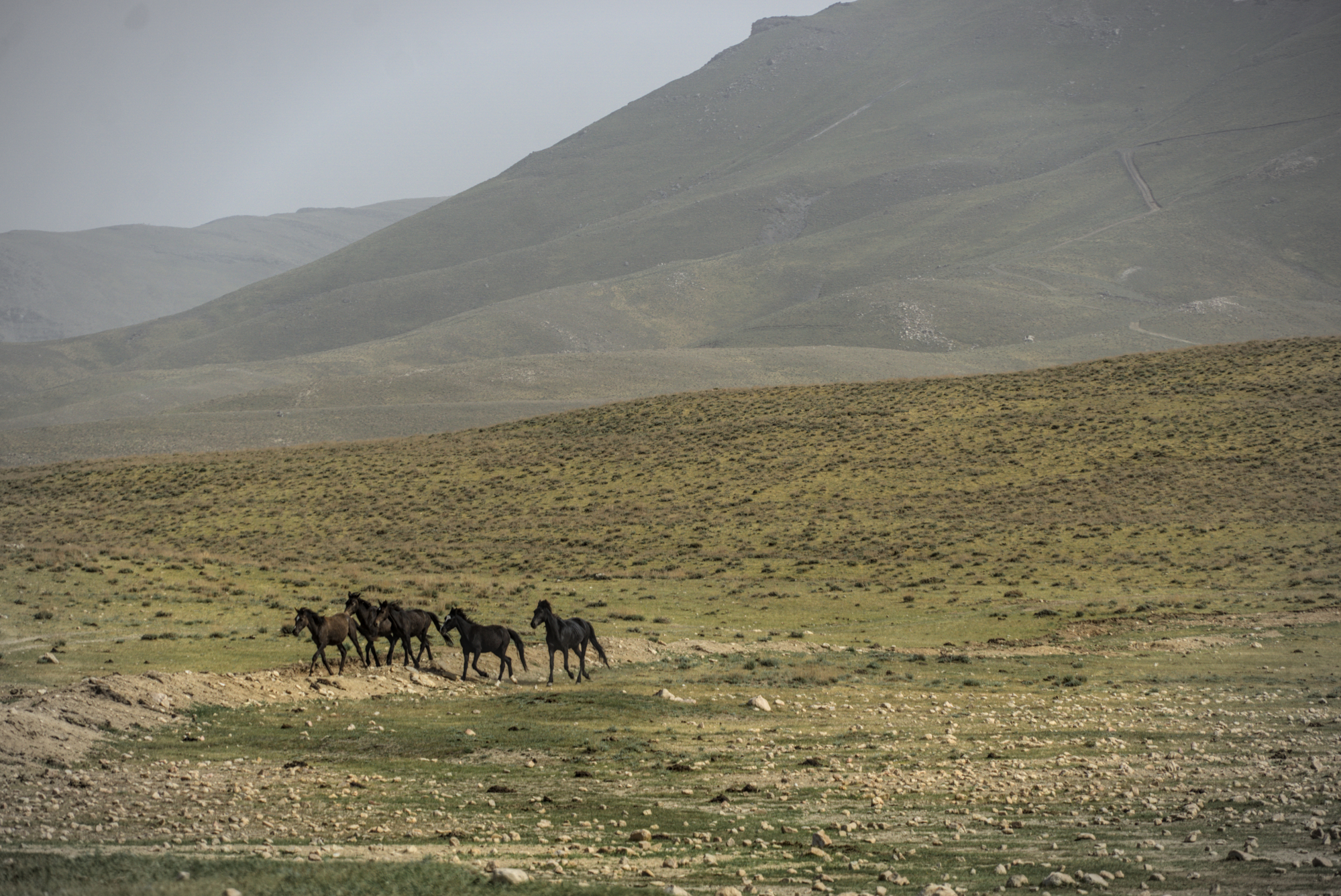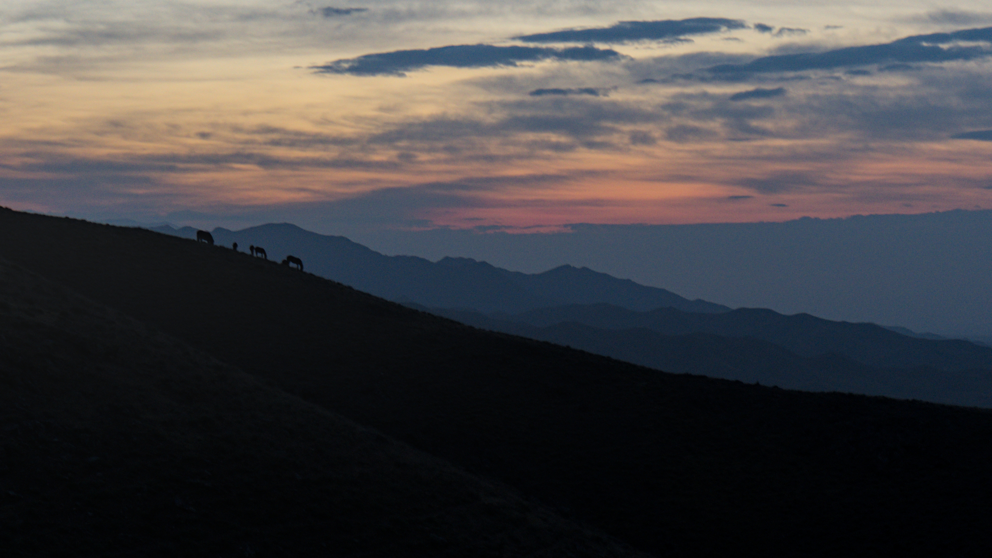 The next day was spent hiking up to a lake 10Km up the valley into the "Extreme Tourism" area, the crystal clear mountain lake we had been dreaming of swimming turned out to be more of a bog, but seeing hundreds of horses run around us definitely made for a special day. Following questionable online route instructions with a non existent path on the way down we got stuck at a dead end on the edge of a cliff, looking up, we saw vultures circling us, it felt pretty... extreme... Not feeling like attempting this new route across the cliffs 2 hours before dark we tried to find the way back the way we came where we were helped by a shepherd back to the path. Arriving after dark we found the two Swiss cyclists (Zora and Phillipe) we had met in the morning, had pitched next to our tent. Not so much time to spend together as it was late and we were only thinking about eating food after a long day. We would end up meeting more in the future in Tajikistan after they sold their bikes and carried on their journey in a Lada Niva.