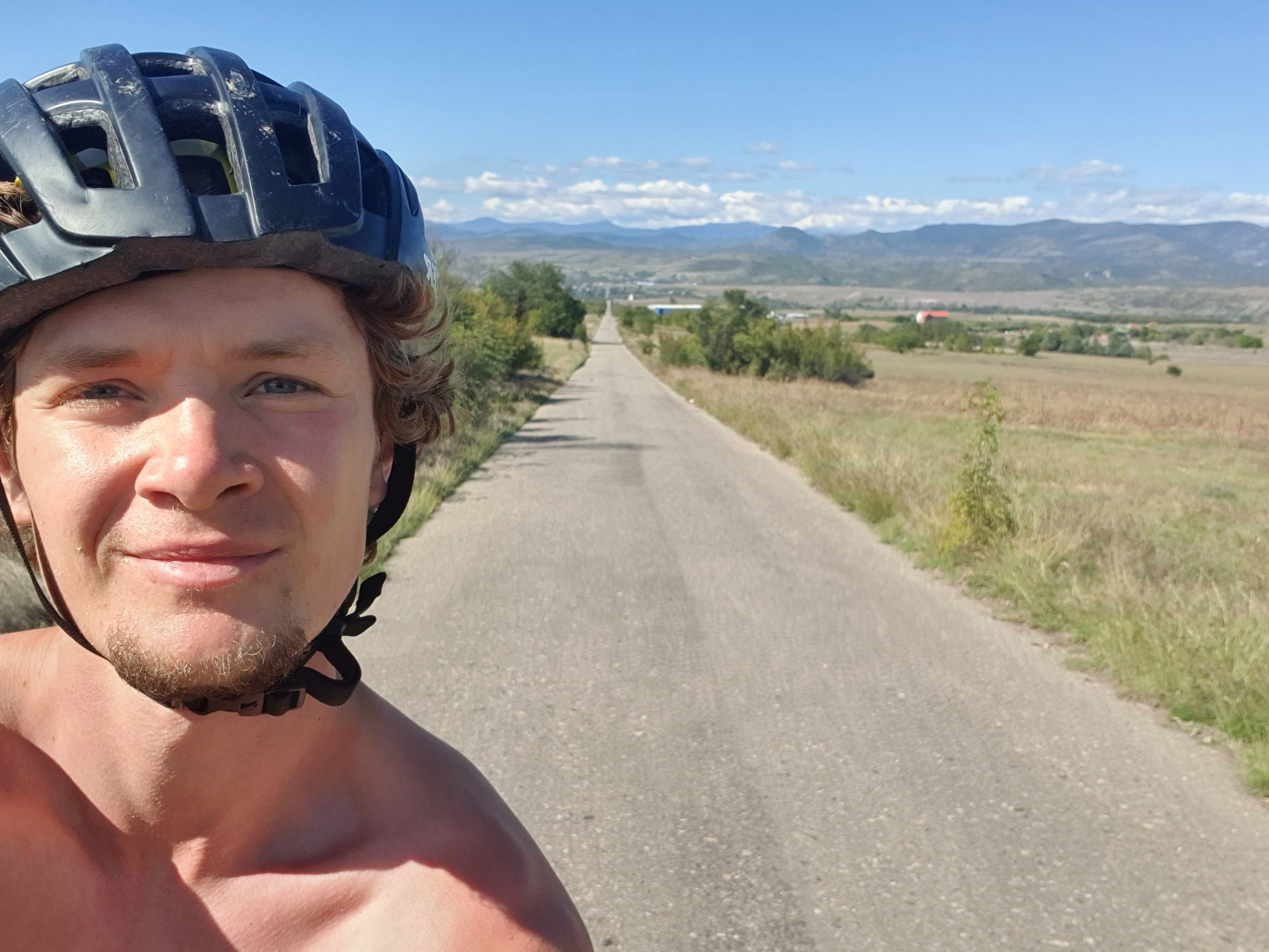 The already late start got even later when I passed 3 stray puppies, abandoned in a cardboard box outside the town. I felt bad for them and gave them food and water, even though when they grow up they'll be the ones chasing bikes.