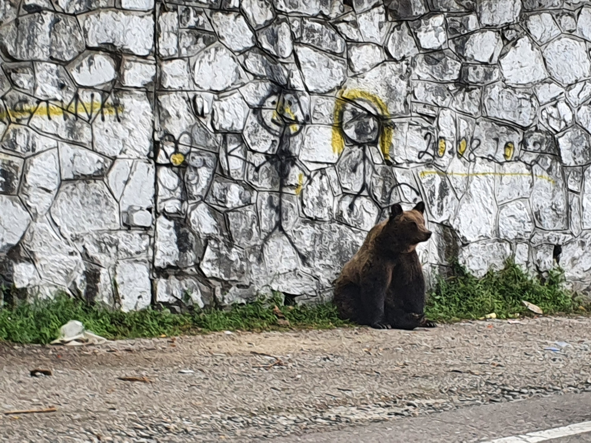 On the way up on the tarmac this time multiple people shouted "urso!"(bear) out the window. I was pretty scared but I had to keep going as there was no other way. I spoke to some dutch motorbikers in a layby and they told me they were just 2 turns away and warned me about finding other options. I tried hitchhiking for a while but had no luck so rode on feeling nervous but excited. I approached the second corner slowly and could see a mother bear and two cubs! They were pretty occupied with the people feeding them in the car so I casually rode on relieved after my first bear encounter!