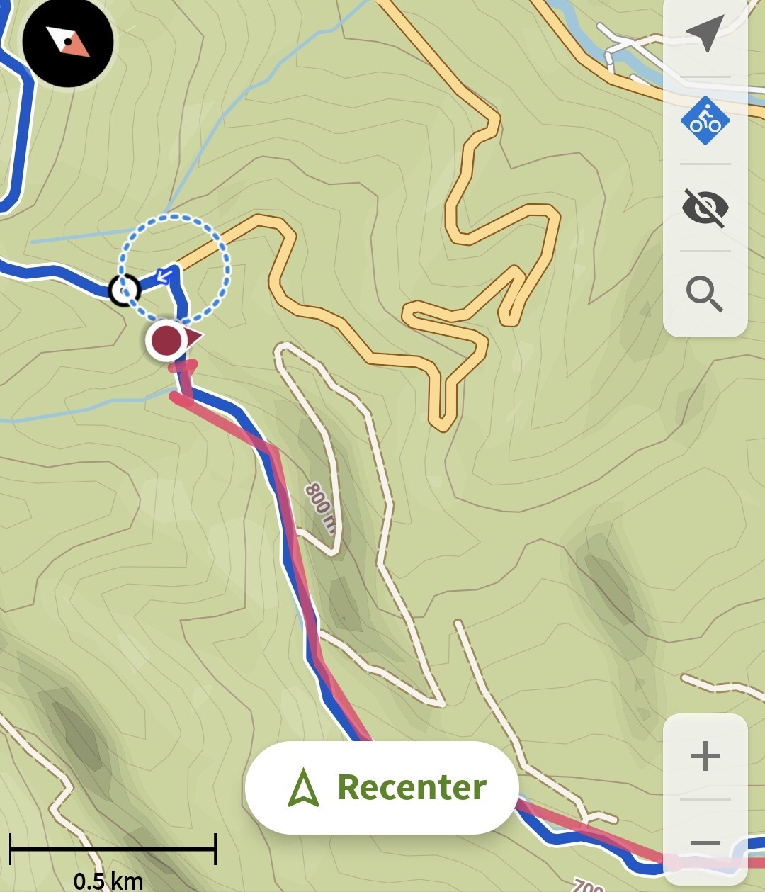 Sat around in another field for a while making some plans for the future, I thought the climb wouldn’t take so long so no need to rush. By mid-day I started climbing a gravel track that would link up to the road later on. This took a few hours with some long breaks looking for porchini mushrooms for dinner. I met two loggers and one told me that the path doesn’t carry on anymore and I should turn back. I decided not to listen to his advice and carried on up the steep path in the forest to find out for myself. Was pretty disappointed to find a dead end, there was a footpath and a stream that I could try through the bear infested forest. I scouted out the stream but that lead nowhere and I could just about make it up the steep slippy footpath but this disappeared into thick shrubs with no way though for the bike. although I was only 100m away from the road I headed back down the path in acceptance and reached the bottom by 15:30.