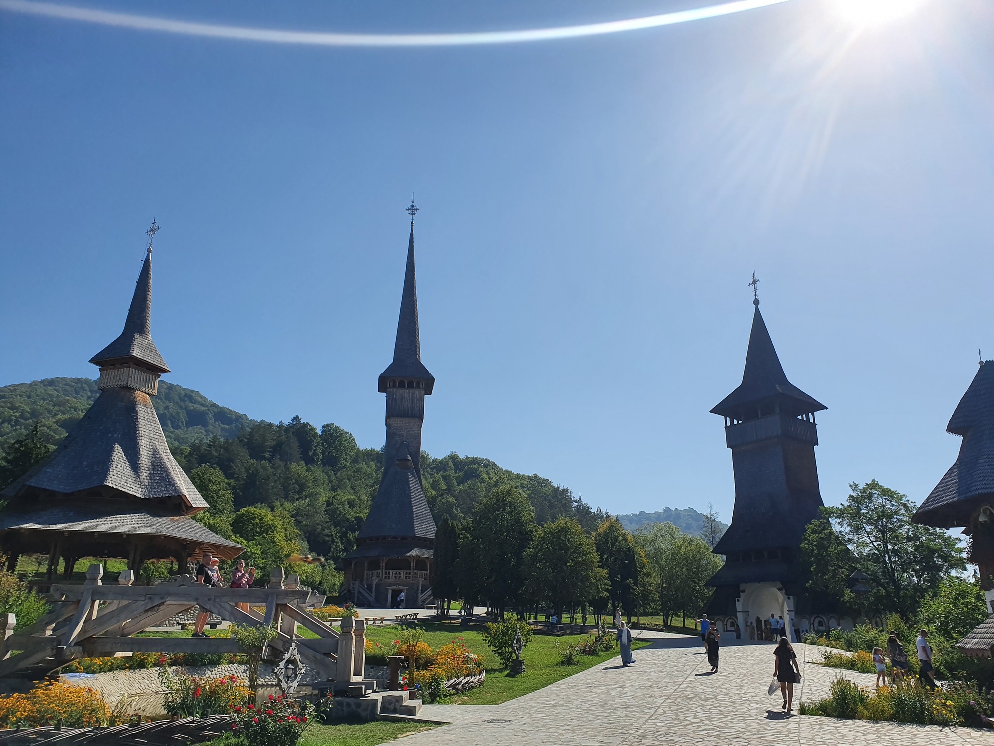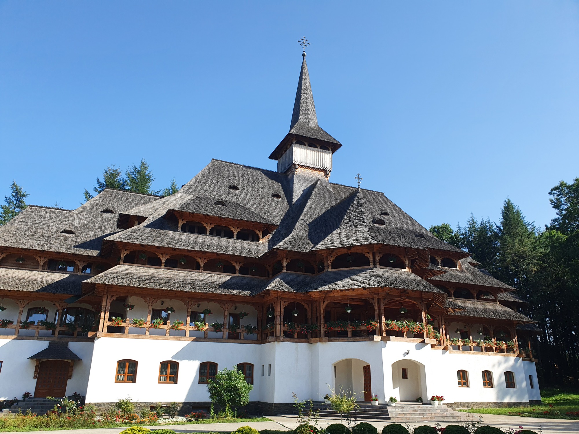 Took some tomatoes and rosemary from Daniels garden and the long journey South beginned as I headed through the mountain ranges of the Maramures. Life is always more peaceful and simple in the mountain villages and people are generally a lot more friendly, even though they rarely speak english. Was intrigued by a huge spire in the distance so pushed my bike up the hill to see and ended up in Barsana Monastery, one of the famous wooden churches of Maramureș. There was a very special atmosphere to this place with some enchanting Romanian singing being played throughout the monastery.