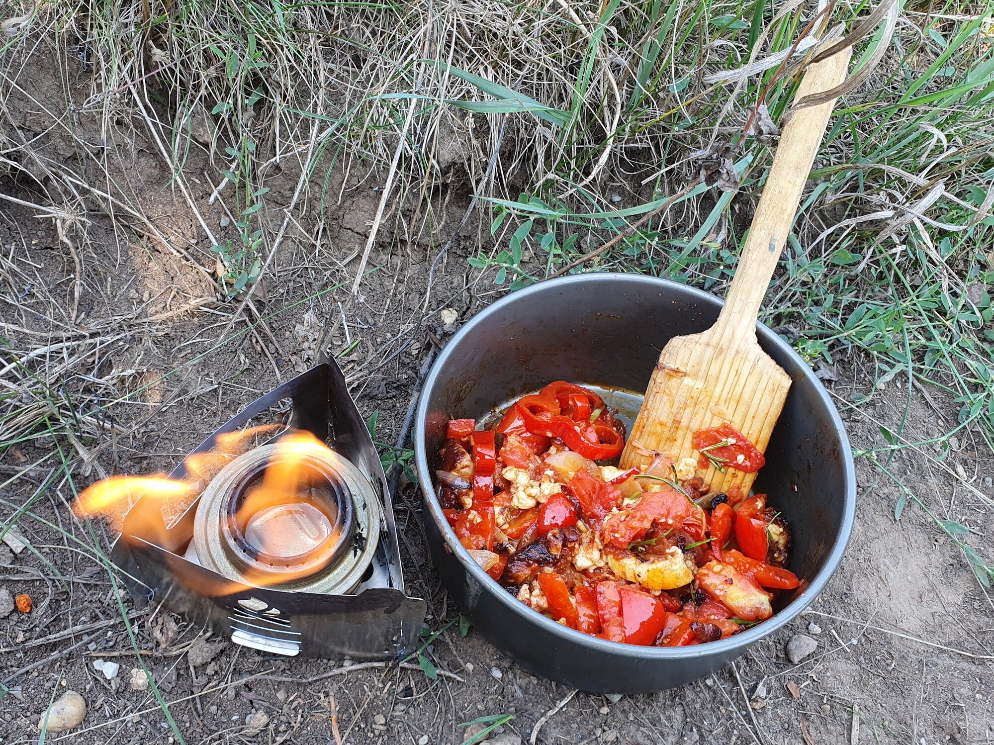 Decided to stay off the main road and take a path over a hill towards the city. The climb was brutal in the mid day sun and I had to push a lot of the way because of the gravel. The decent was fun though and I found a spot behind a tree to cook up some delicious haloumi fajitas.
