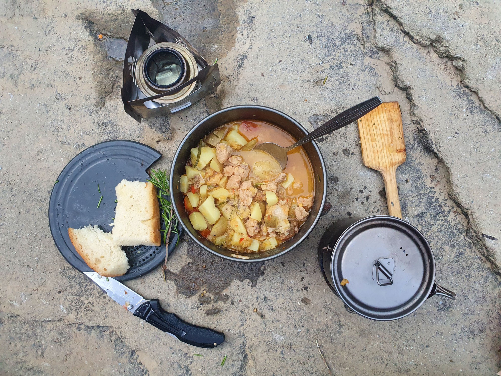 The pass took a long time and I needed water to cook so headed back down to find a river where I cooked up the last of the meats into a delicious stew. A lot of indecision occurred looking for a place to camp and eventually settled behind a haystack, hoping that the farmer wouldn’t notice in the morning.