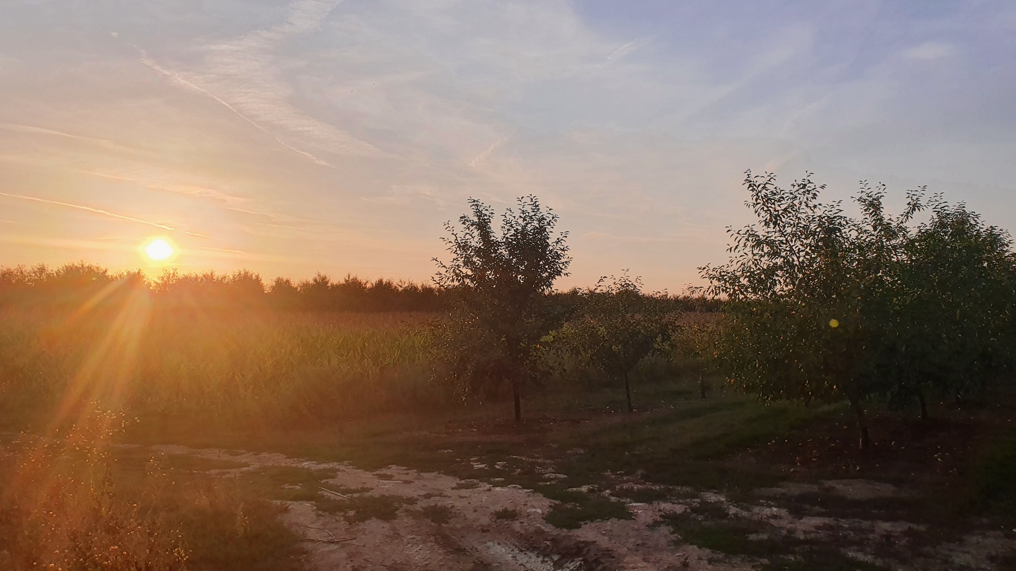 Pitched my tent in an orchard just in time before a huge thunderstorm drenched the land.