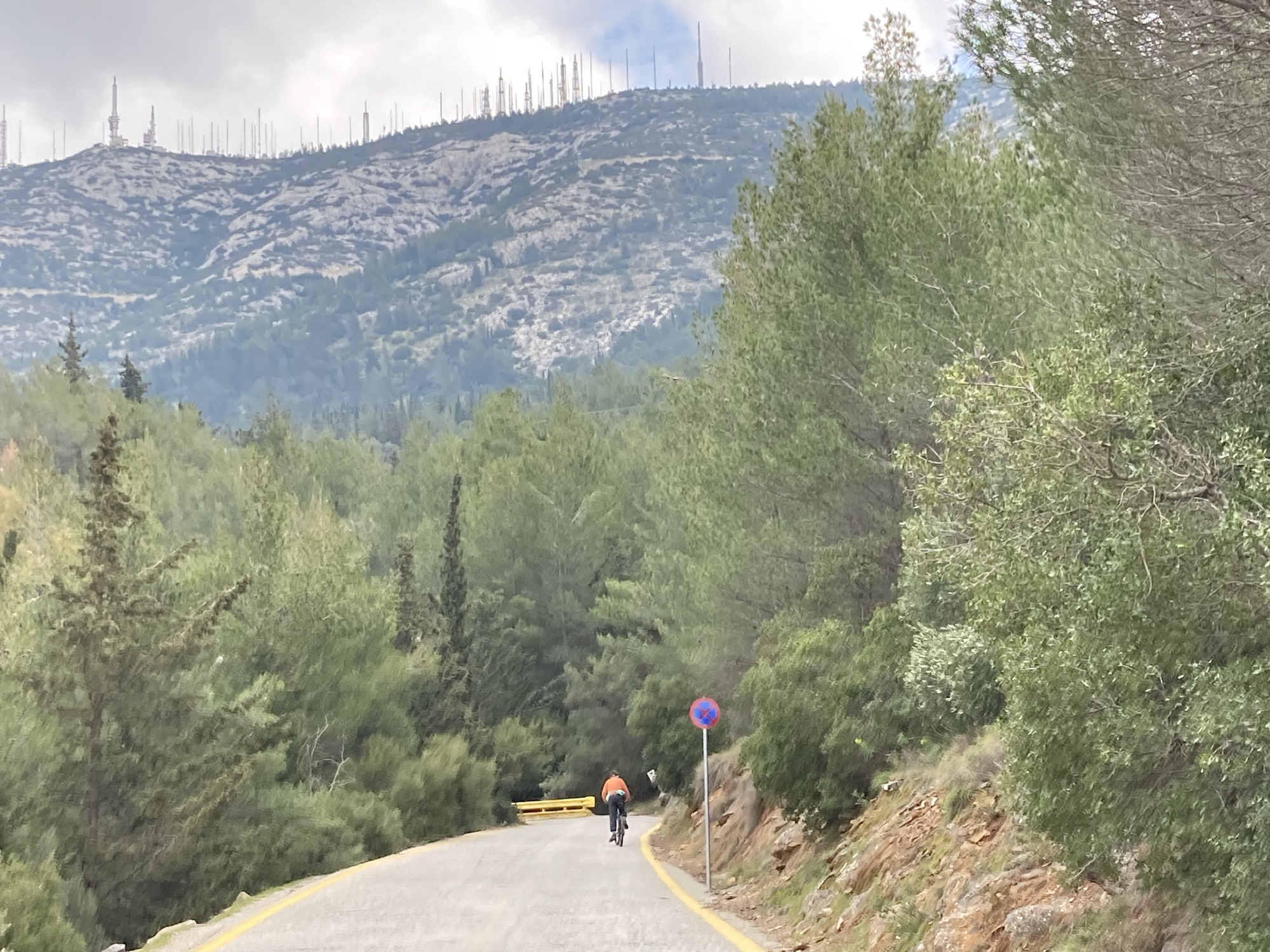 After a week or so of just pottering round the city, it seemed like time for something a bit more strenuous. So, on a sunny Saturday afternoon, I revisited a favourite (for me, and for lots of Athenian cyclists) short ride: up to not quite (see below!) the top of Mount Hymettos (or Imittos)