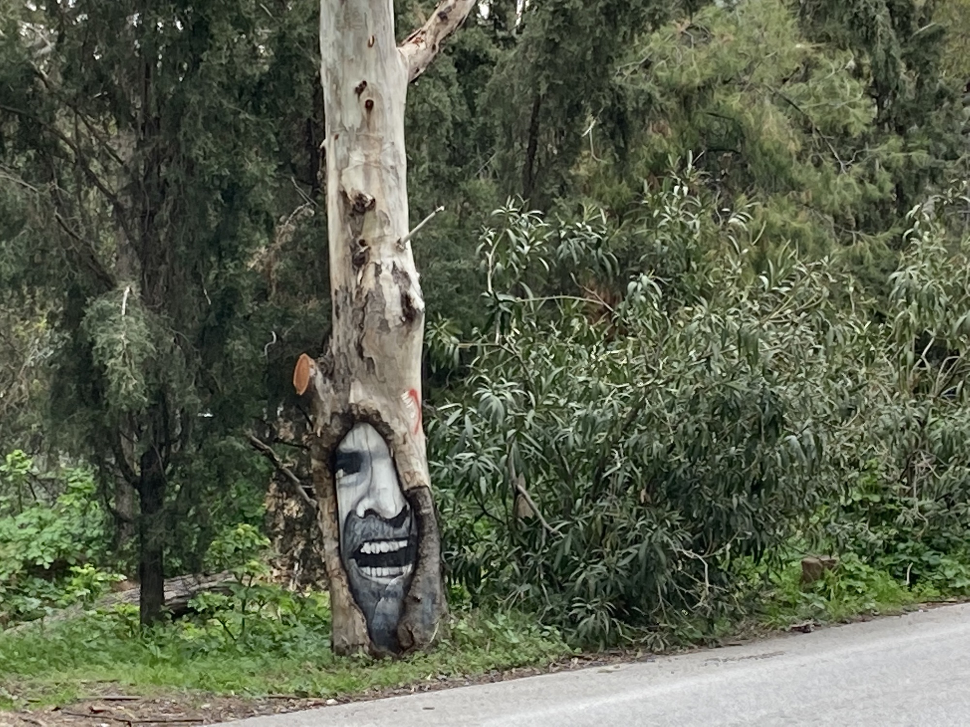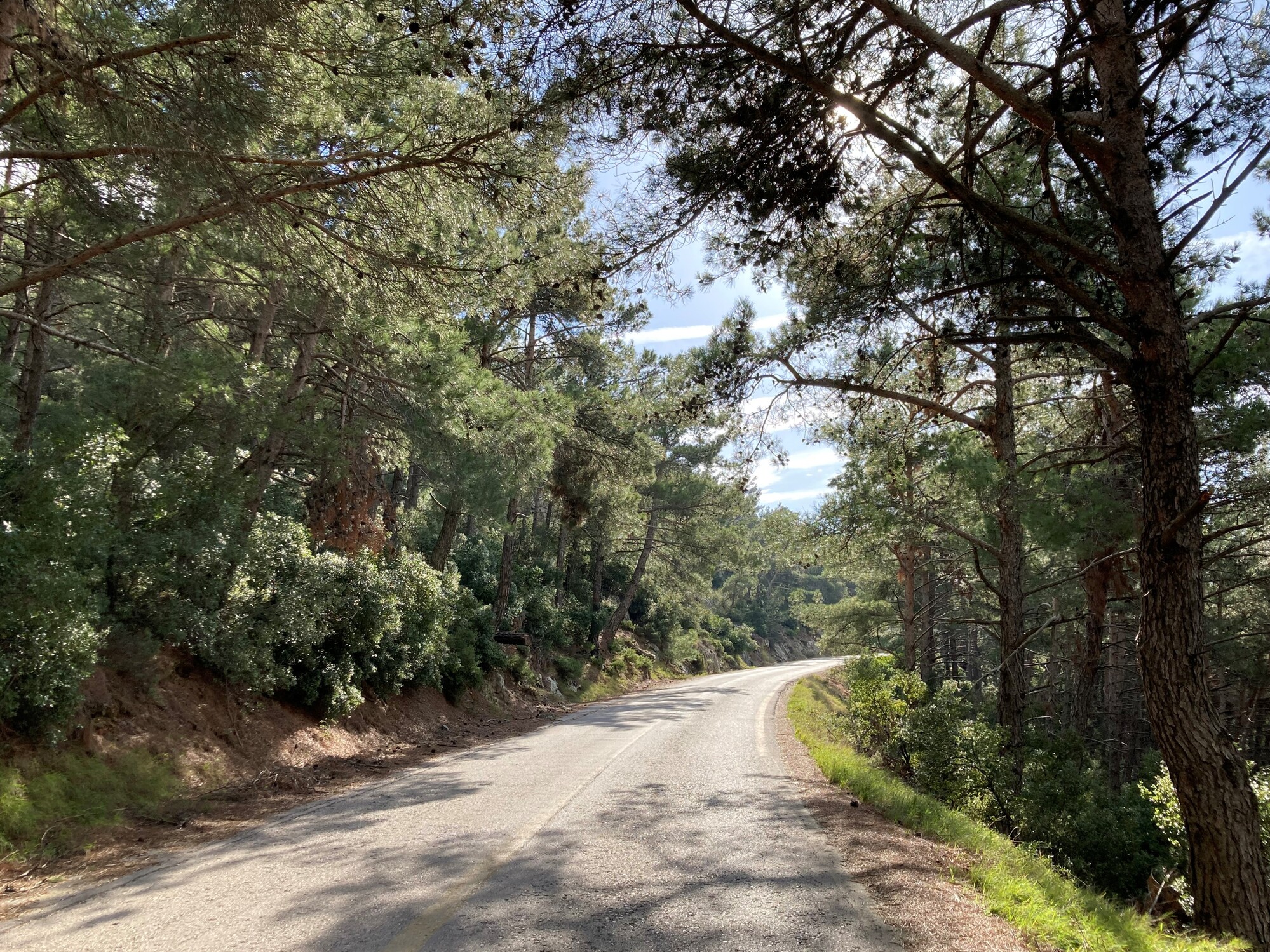 After a bit of wiggling through the city streets, I get to the campus of Athens University -- closed to most cars, but the cheerful guard raises the barrier to let me through. Then it's a steady climb on a wide, traffic-free avenue, past dog-walkers and tennis players, up to the edge of the forest at Kaisariani.