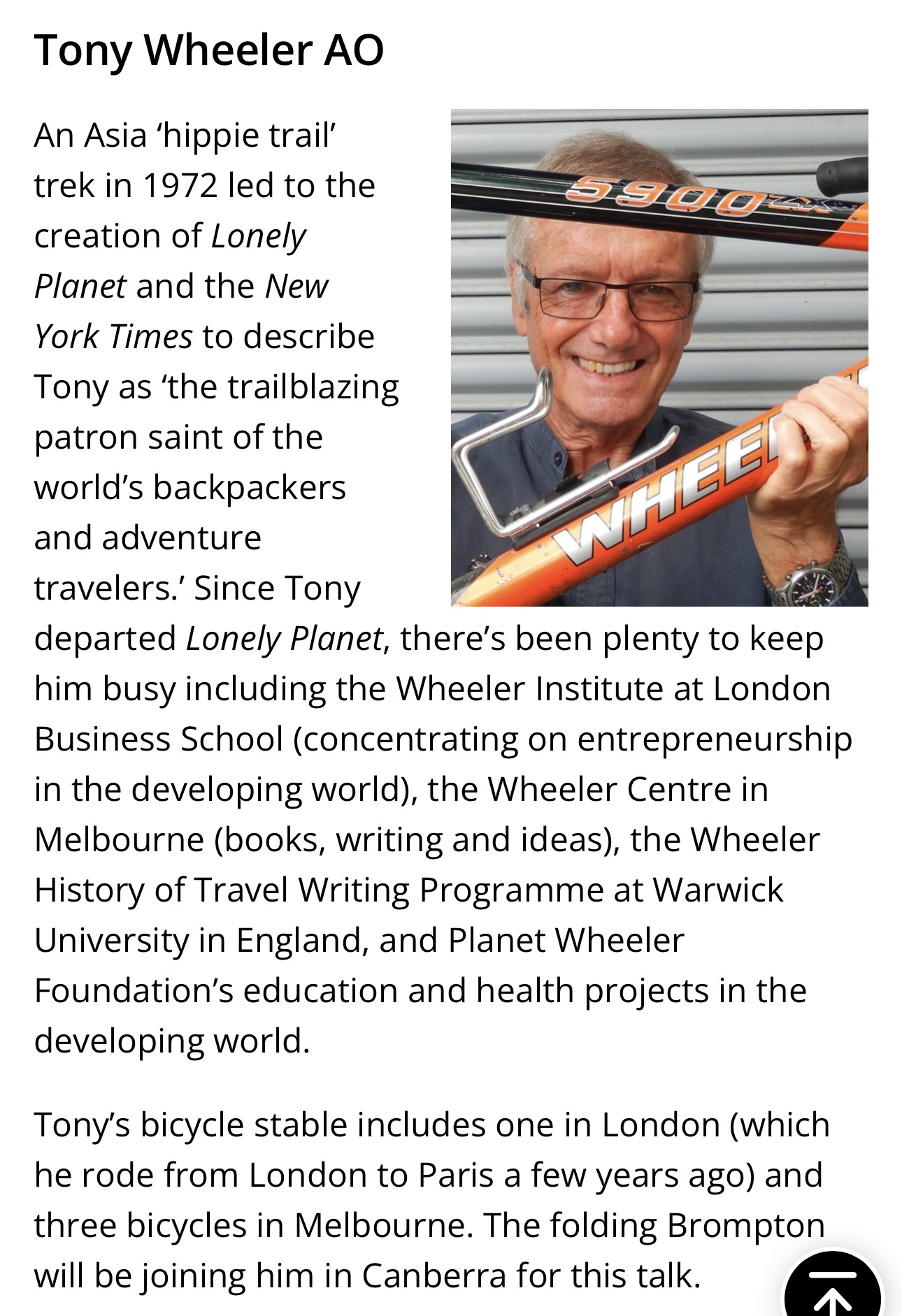 Interestingly, Tony has well and truly moved on from Lonely Planet. His focus is his Foundation and it’s philanthropic projects.