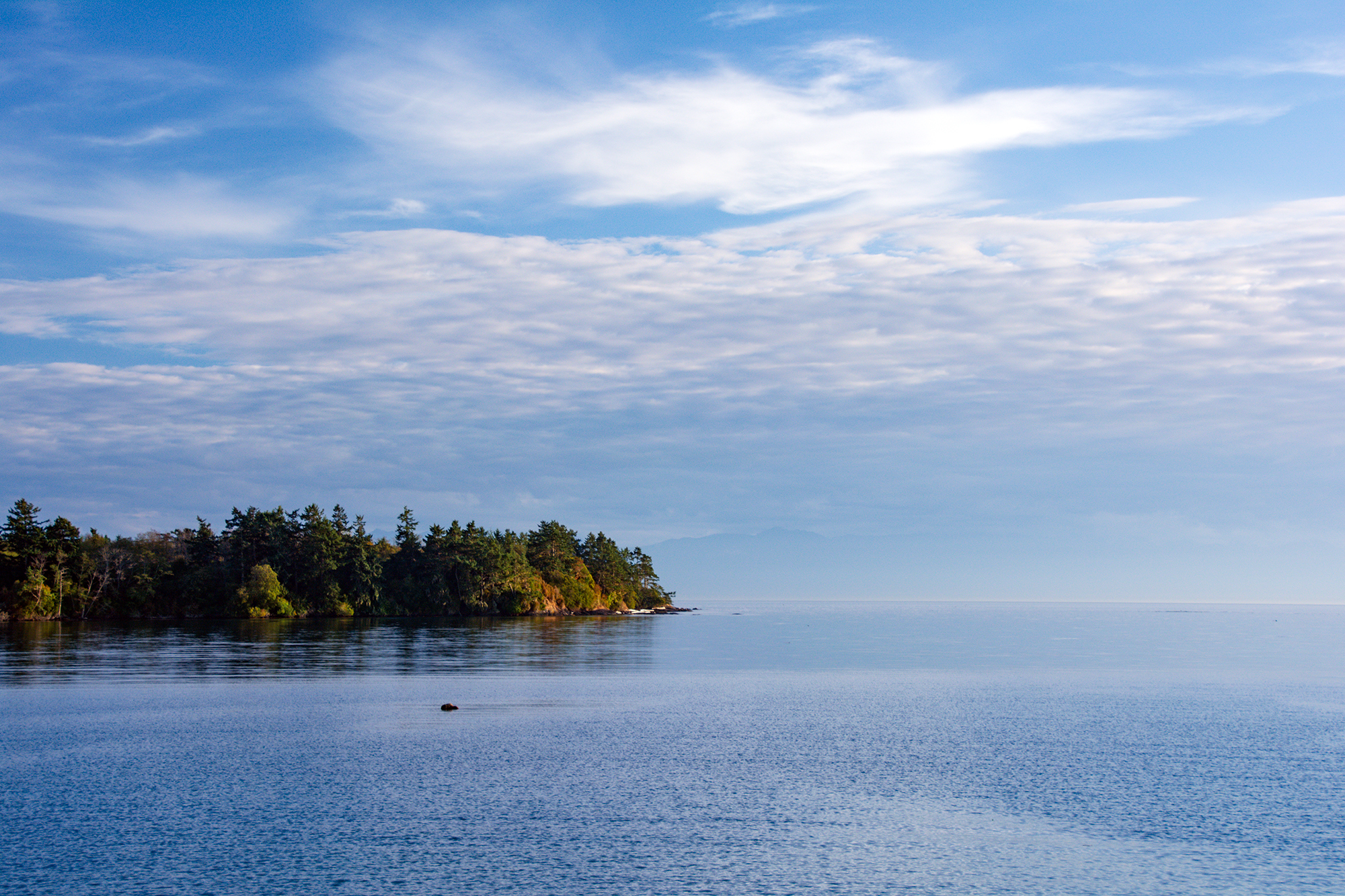 I catch False Bay at high tide and eat smoked fish and apples for dinner at the edge of a short bluff with tiny waves diving into the shore below.