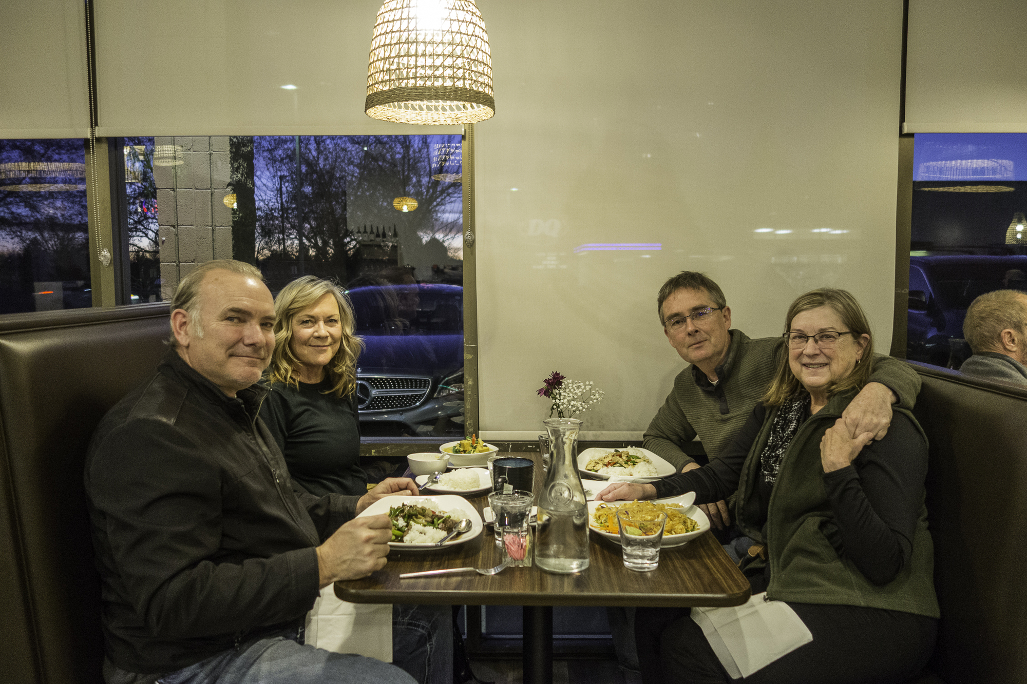 "Let me guess you are going to have the Pad Thai" Patrick says as we are meeting up with friends Bob and Cynthia for a dinner at Thai Bistro. "Of course, it will be a while before we have Thai food again. And you'll have a curry or something with Basil?" Rachel replies. "Thai Basil," he says. We have a nice dinner and visit. We will get together again for the Sunday Super Bowl game at our place.