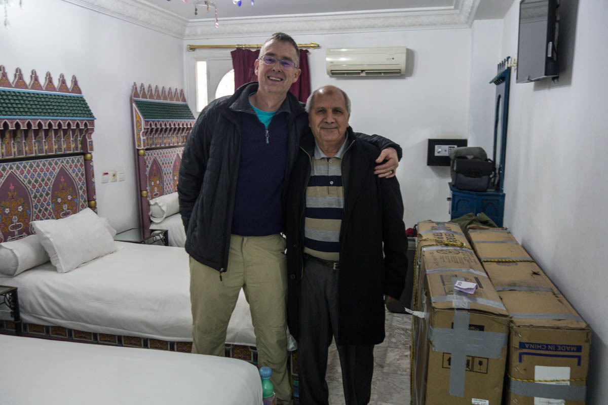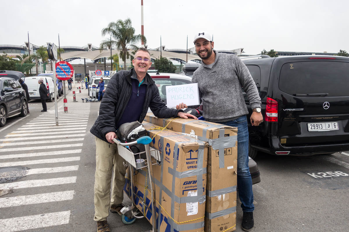 At the baggage claim, we wait with anticipation if all gear made it and a sigh of relief as all arrive. The bike boxes are in good condition. Patrick exchanges some US dollars for Moroccan Dirham. Going through Immigration is an easy formality and with nothing to declare through Customs. Outside, Patrick looks for and finds the arranged driver to take us into the city and hotel. The airport is far away from city center. The adventure begins; our first experience of Moroccan traffic.