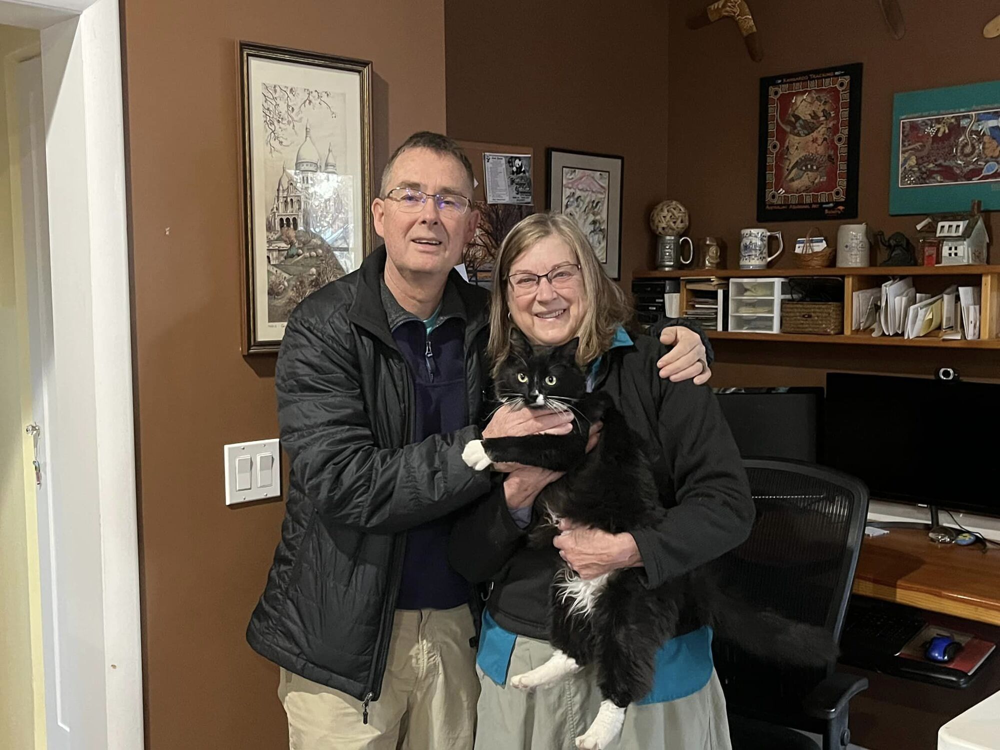 “The plane is in the air now, we’ll still have an hour in Salt Lake. There are 7 on this plane to catch the plane to Paris.” Patrick checks at the counter when our flight out of Boise is delayed by 20 minutes shortening the time for the connection. This is always a worry whether the gear and bikes will also make the connection. Bob picked us up at 0830 to take us to the airport. We say our goodbyes to Kim and the Kitties.