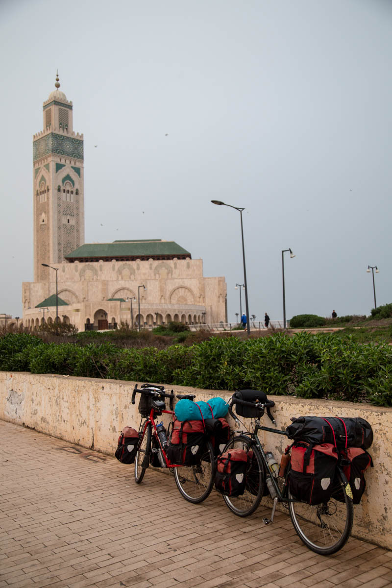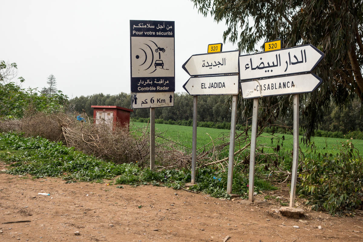 from route 320 and enter the town we first pass the Medina and the road curves around to a main street. We ride the length of this busy market street looking for the hotel. Patrick stops and asks a man who ends up being a Riad owner in the Medina. A Riad is a traditional house with a courtyard and typically luxurious and expensive. They first talk in French then switching to German. Nice that Patrick speaks different languages, stronger in German. We turn around heading back the busy street and stop again asking another man. The first man joins in again. They don’t seem to know of a “cheap” or middle class hotel, their advice is to keep going to El Jadida, or go into the Medina for a Riad. As we get back to the T junction, Patrick spots the Hotel sign Chris told us about. There is a narrow corridor besides a café and a stair up. The café owner shows the room. Small, two single beds and a squat toilet with shower across the hallway. For 120 dirhams we take it. Later when walking to the Medina we see the Poste to the right of the junction. We are fortunate that we met Chris and that we knew there was a Hotel here in the city.