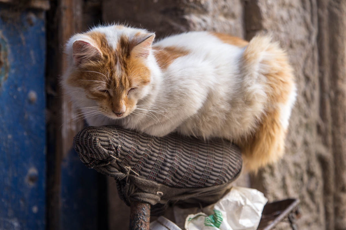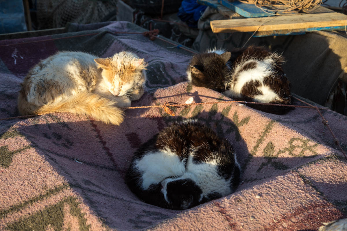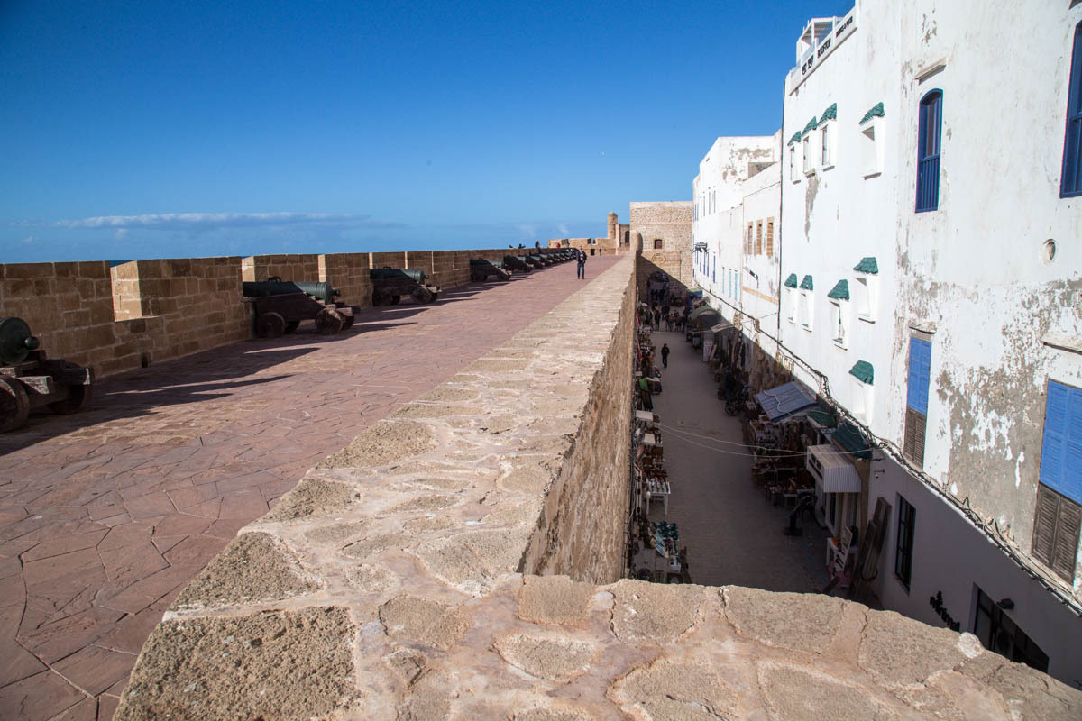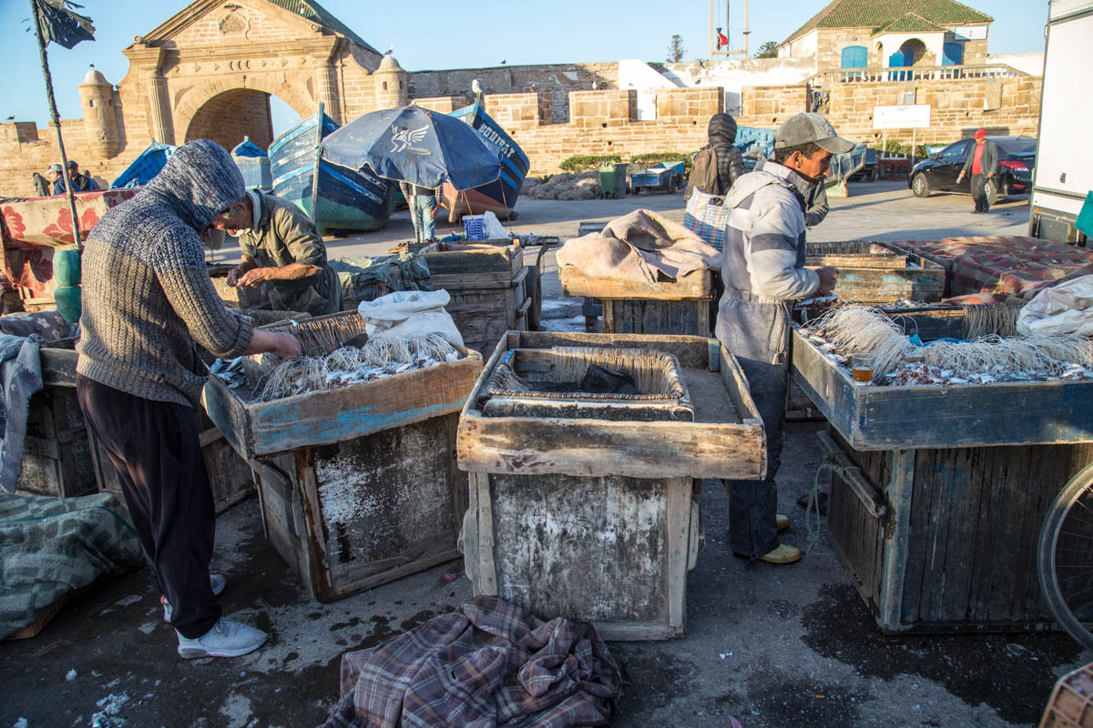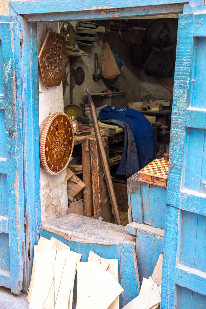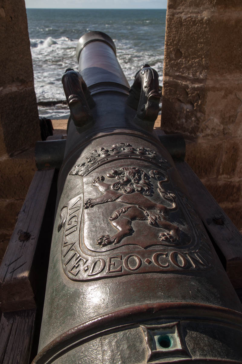Essaouira was renamed from the original name of Mogador, it means “well designed”. It is also known as the “Windy City of Africa”. After a shower and a rest, we venture out to explore more of the Medina and walk to the Harbor. Inside the Medina walls, all is calm the surf is crashing against the city fortification walls.