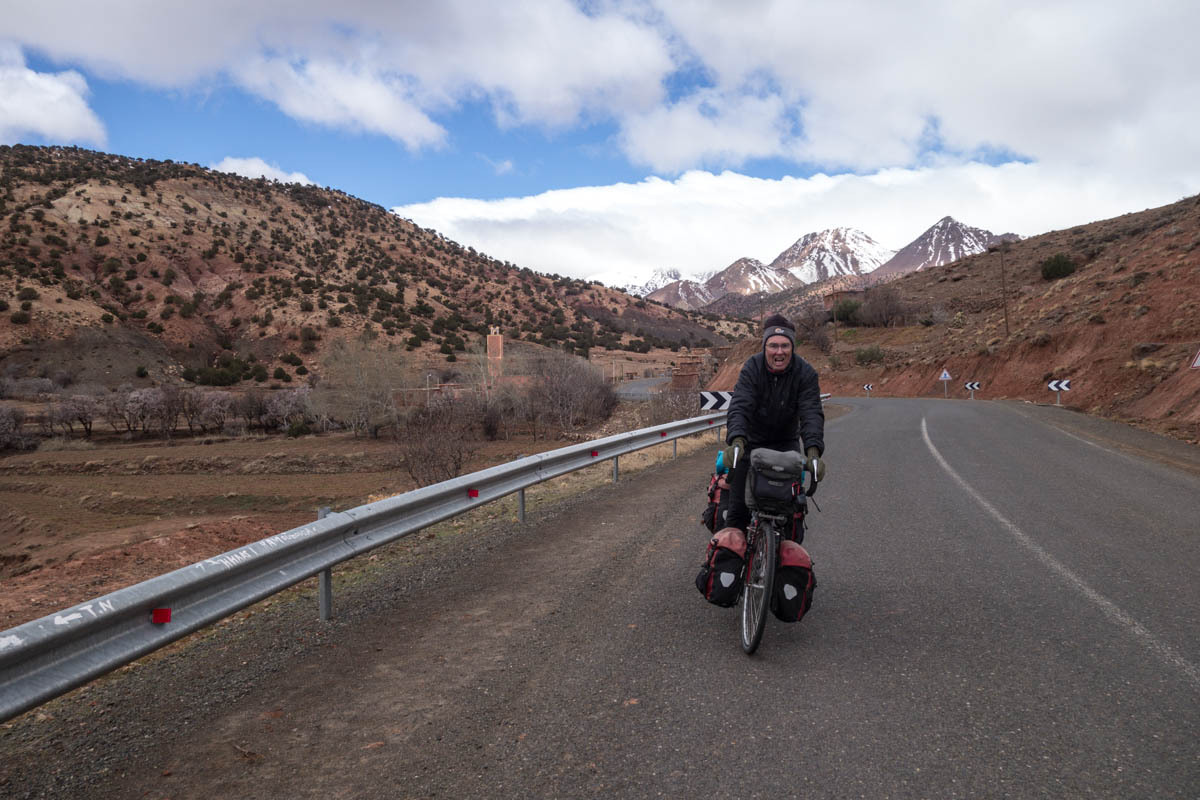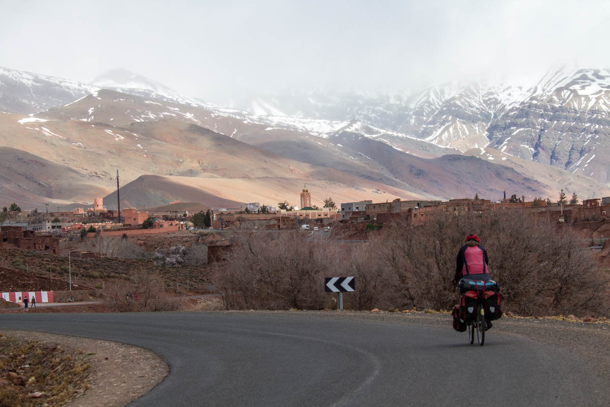 Then we head down 20km to Telouet. It’s not all downhill, there are a few hefty up hills. There is very little traffic, the road has recently been improved and the scenery is very nice. The last part the wind is getting pretty strong, and for a while we have to struggle into it.