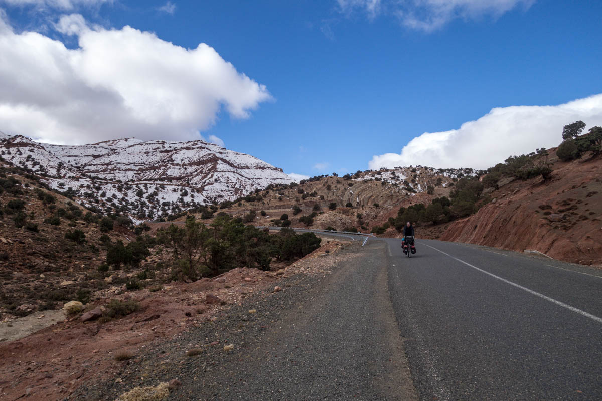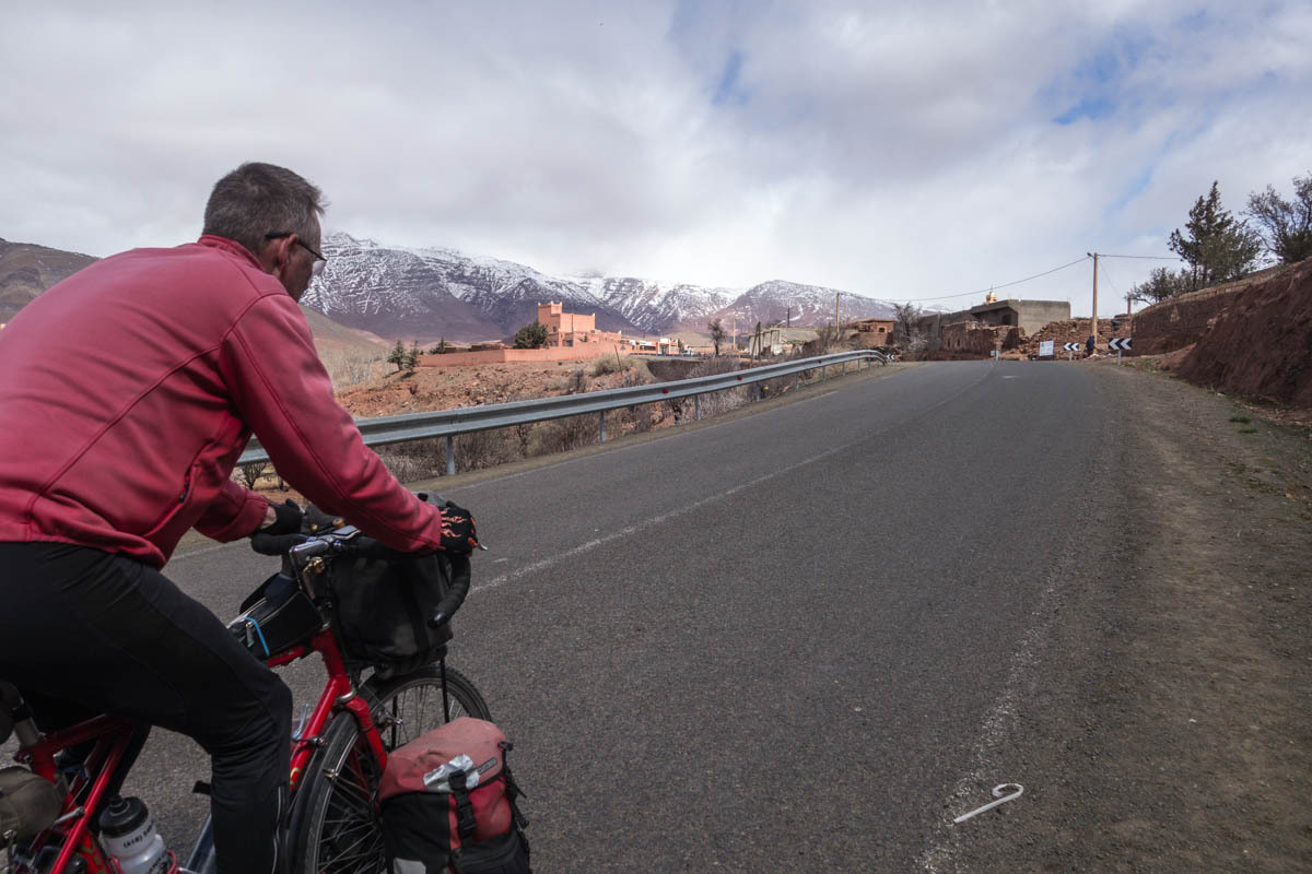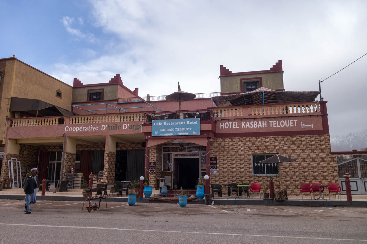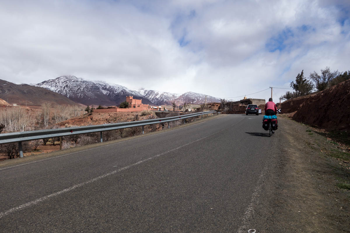 We pass by the Auberge in Toufliht, yesterday’s original goal. It seems open and looks okay. The road levels off for a bit, even descends, but then starts climbing again gradually to the next town.