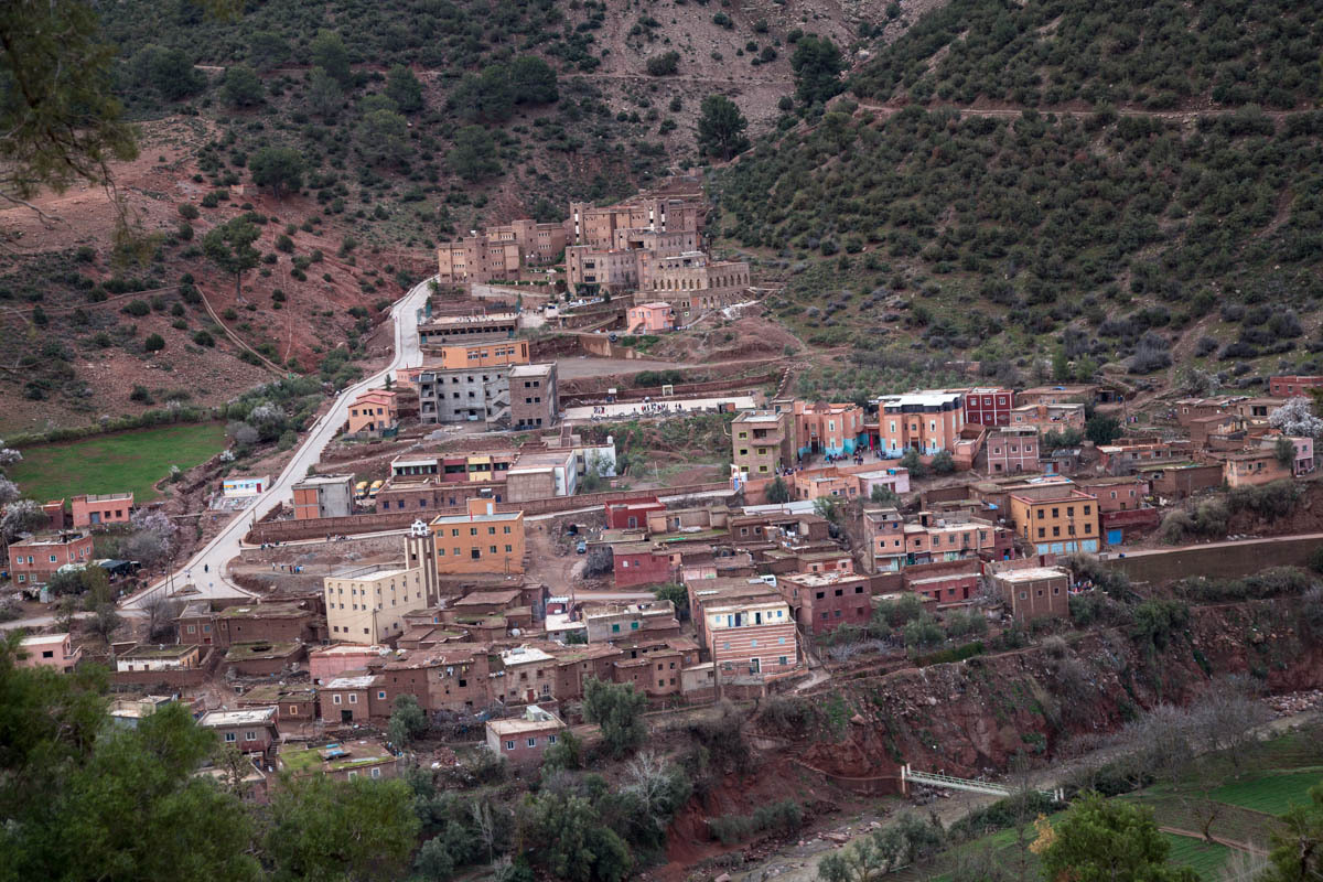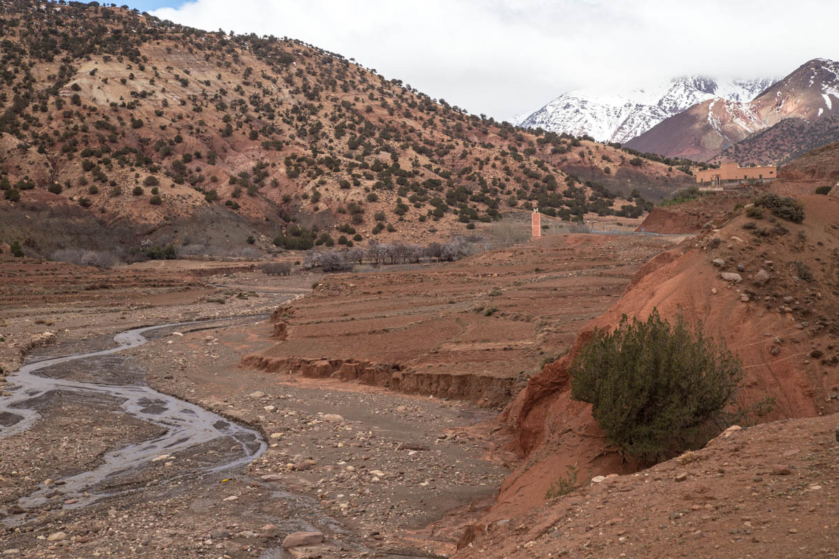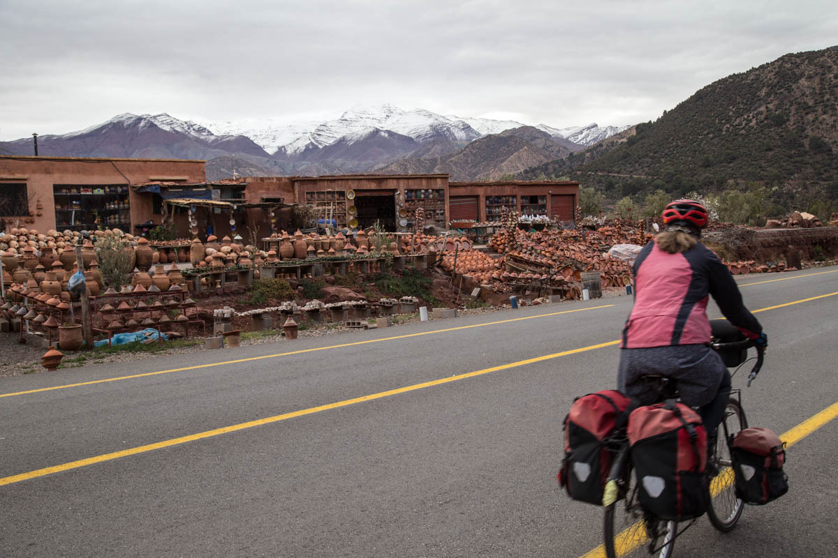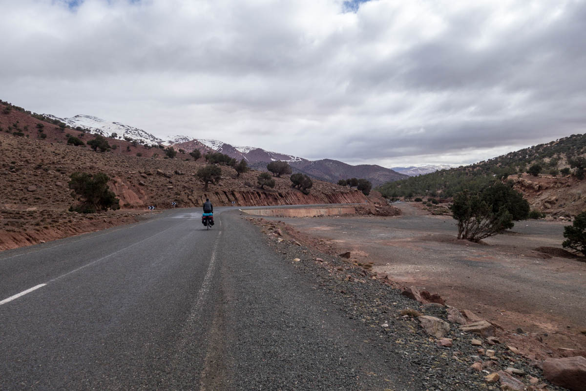 We pass by the Auberge in Toufliht, yesterday’s original goal. It seems open and looks okay. The road levels off for a bit, even descends, but then starts climbing again gradually to the next town.