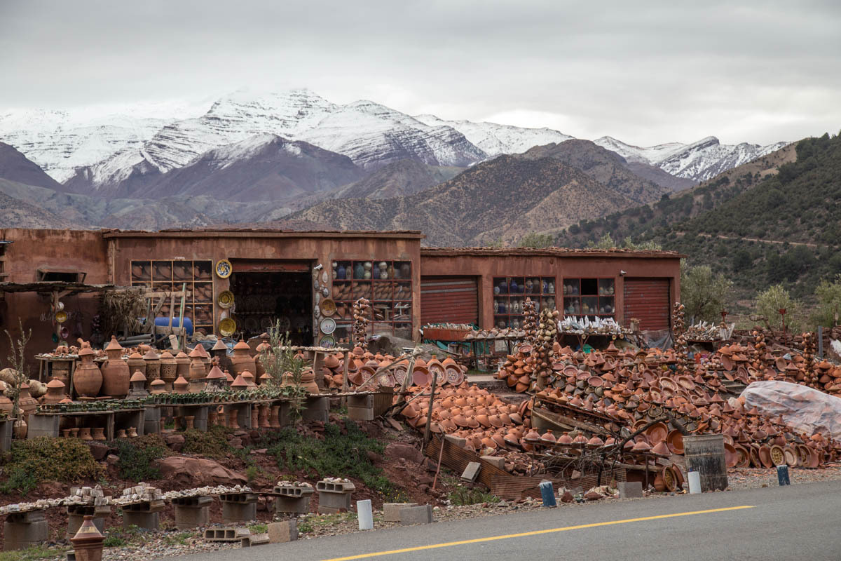 We load up quickly and drop down about 3km to a junction of the old road to Telouet. We stop for a roadside coffee and visit with Polish travelers, and then two Dutch women with a car and caravan.