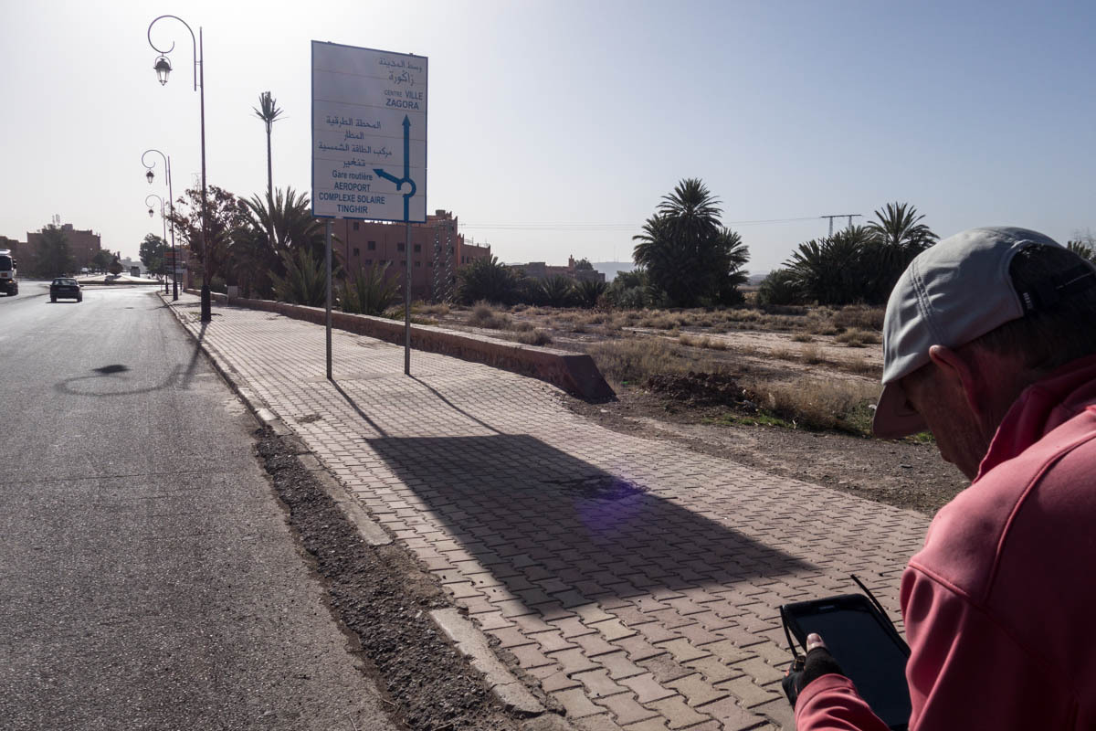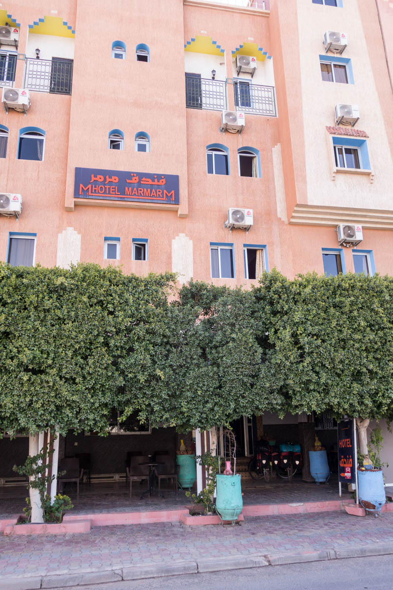 The road into Ouarzazate goes through a huge round about and by the industrial area, yet at the Hotel Marmar there are stop lights. Go figure, in the land of round about’s this town still uses stop lights. We get a “welcome tea” as we are early and the room isn’t ready yet. There’s not a long wait and we get settled into the room. Rachel does laundry in the sink and Patrick hangs it on the roof of the Hotel. All dries quickly.