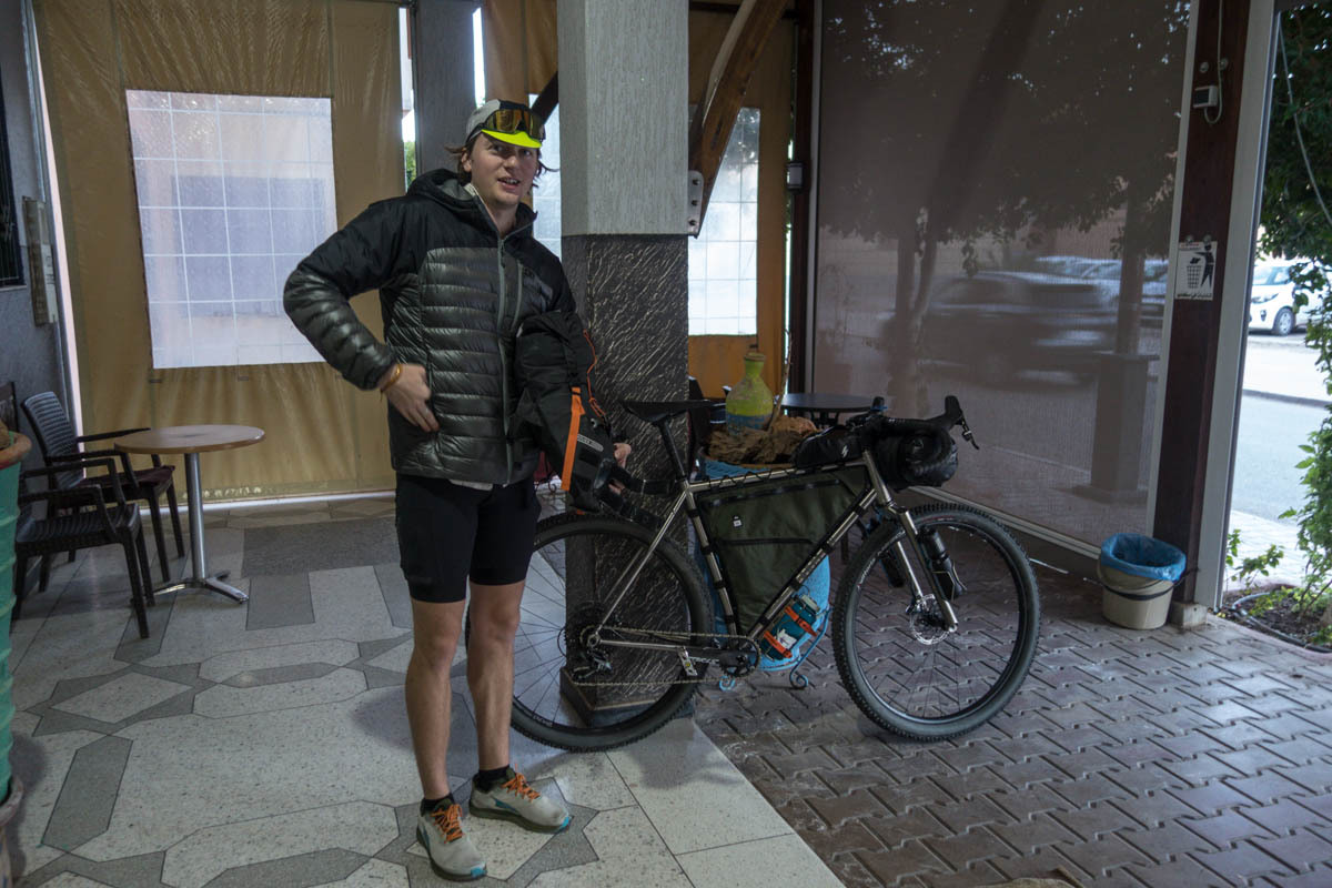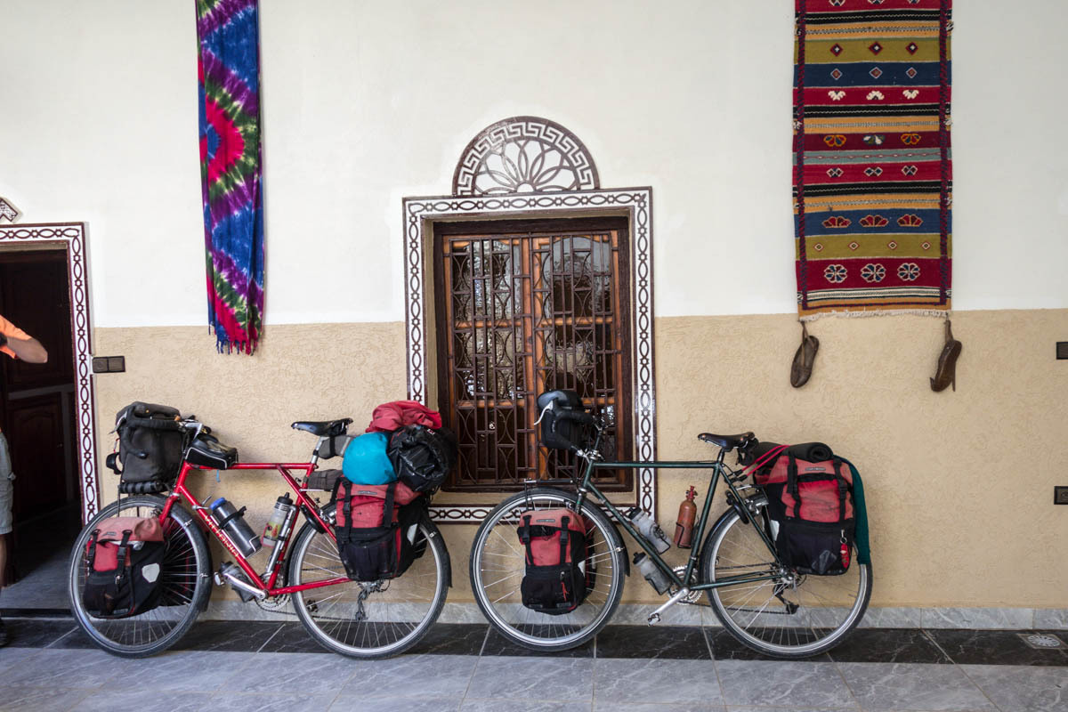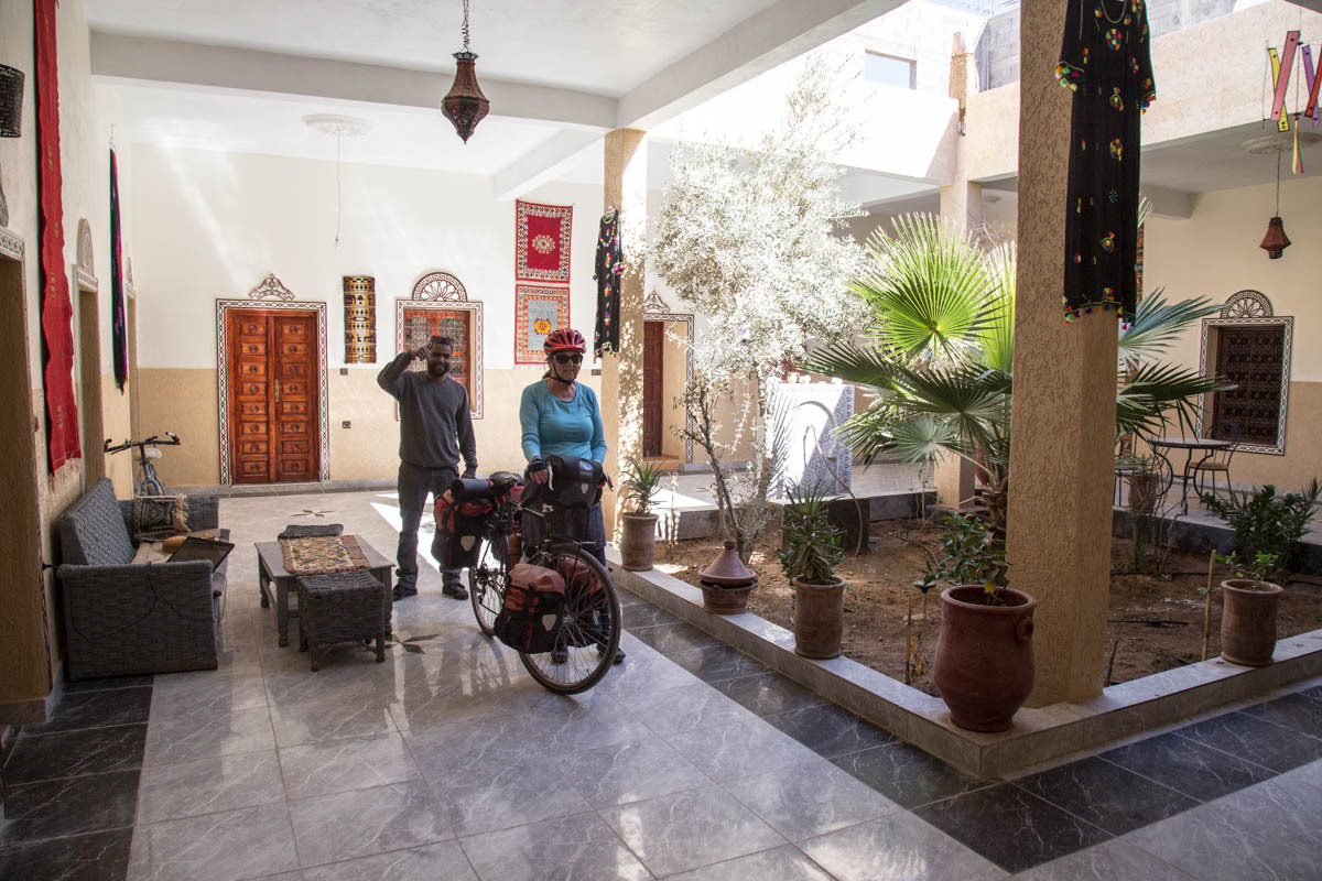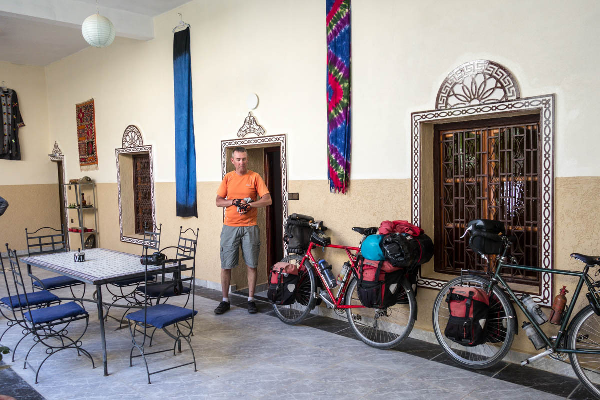 We carry our gear down just before eight and are surprised to see Xander still there packing up. He has a long day ahead of him, but at least we can get his picture before he sets off. After another nice Moroccan breakfast we also head out.