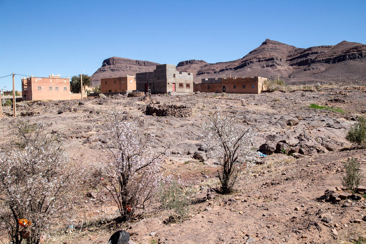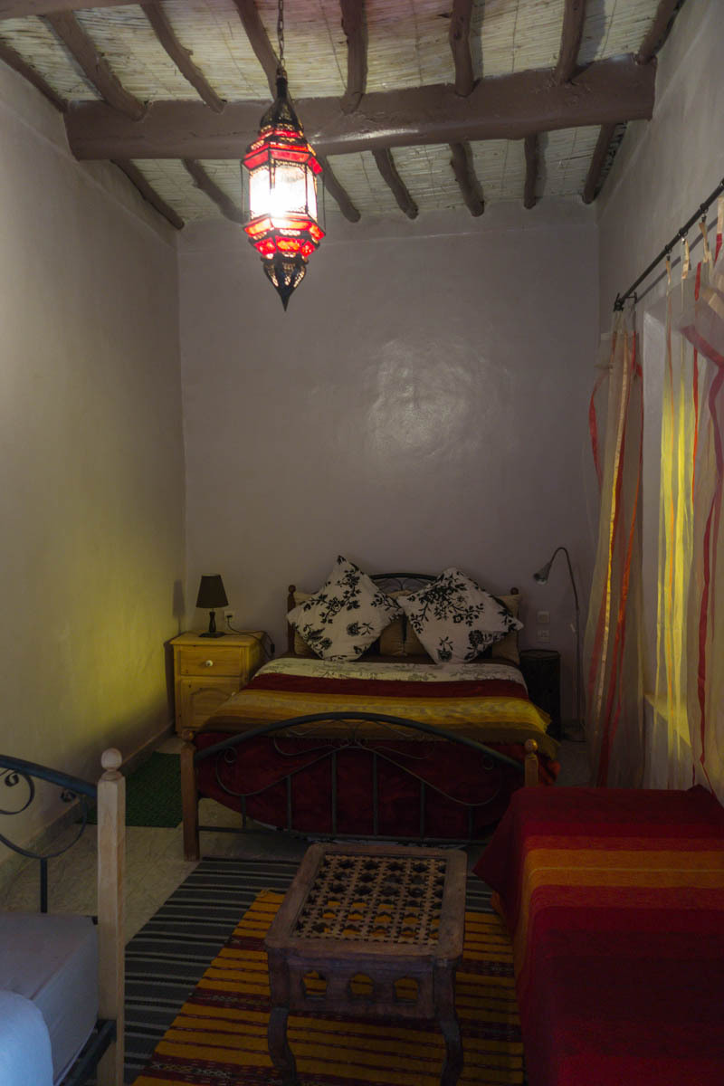 At the entrance into the town we stop at a store and a guy approaches us to ask if we need a hotel. We already have a reservation, but it turns out the guy owns the Riad Dar Tazoulte we are staying at. He guides us there on his moped, about 500 meters off the main road. Agdz seems to have undergone a huge construction boom a couple of years ago, but all work has stopped; probably because of Covid. Almost half the buildings are nice and new, but unfinished and empty.