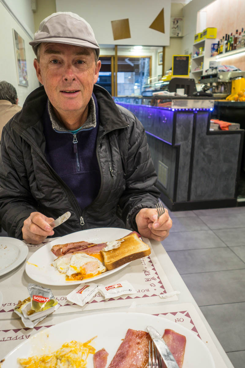 “Ramadan is a distant memory,” Patrick says as we find a café with an English Breakfast. We take the morning first to return to the Sagrade Familia. Tickets are online only and even this early the crowds are growing. So we just do a kora around the cathedral. We walk past the re-read bookstore and find 3 English books and get 0.35 euro for our book.