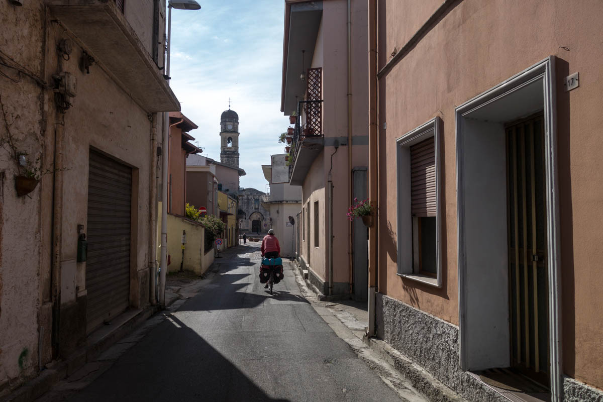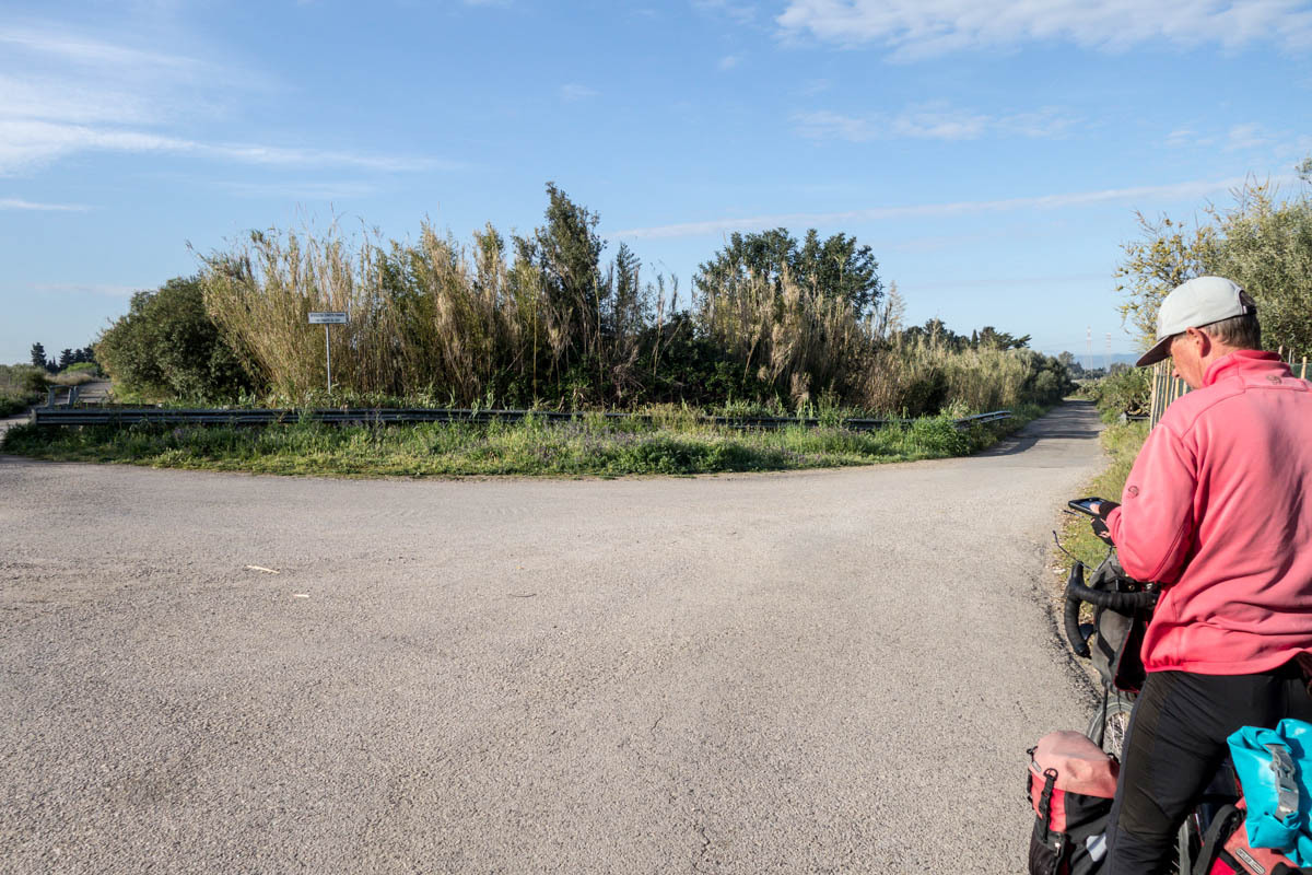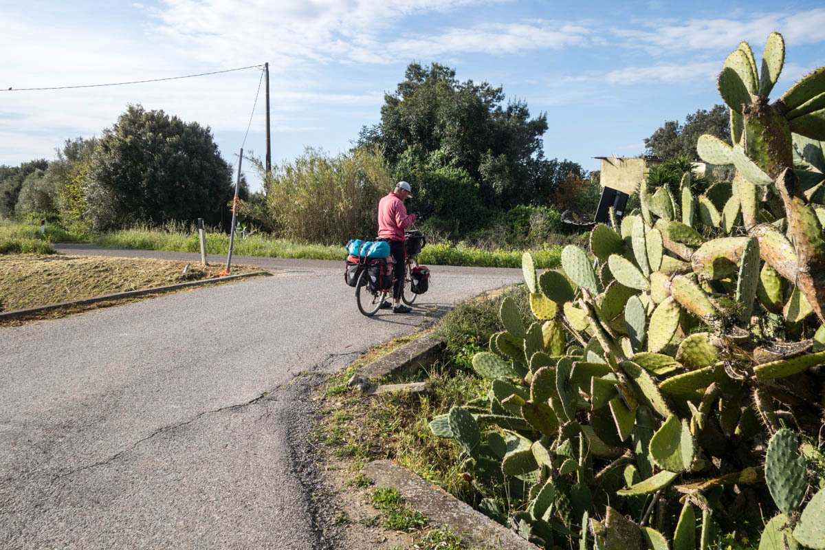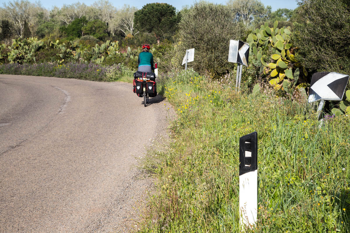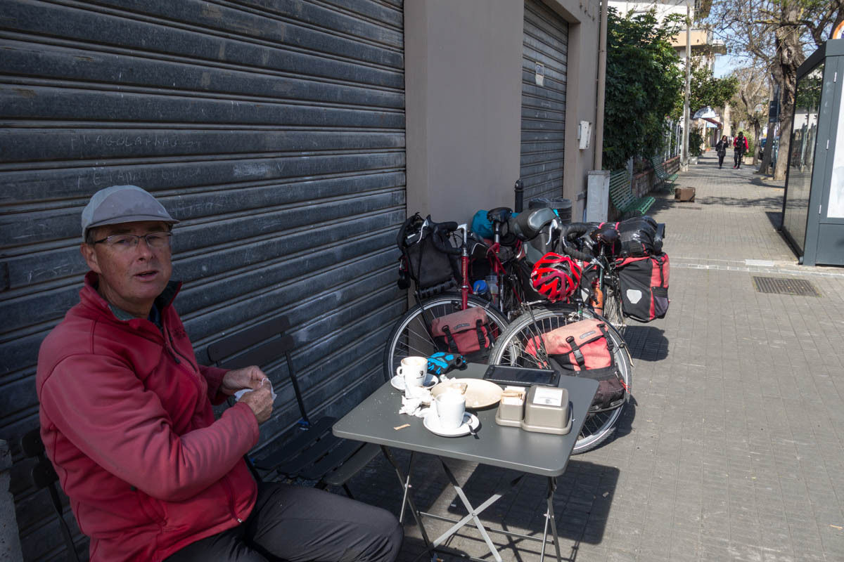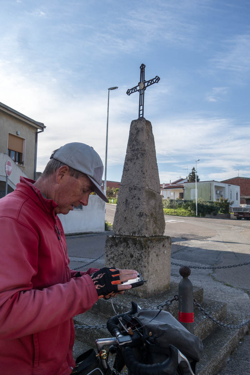 We pick up a bike lane into Assemini. Then navigating through this town also took some time. We stop for a cappuccino and pastry. “Even the sirens sound Italian“, Patrick says as we sit at a sidewalk table watching an ambulance go by and watching people parallel park.