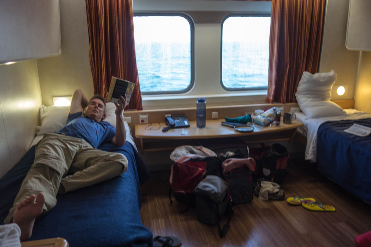 The ferry sails, we are out of Wi-Fi and have to wait until morning and in Sicily to check in with Kim again. We eat cheese and salami and retire early.