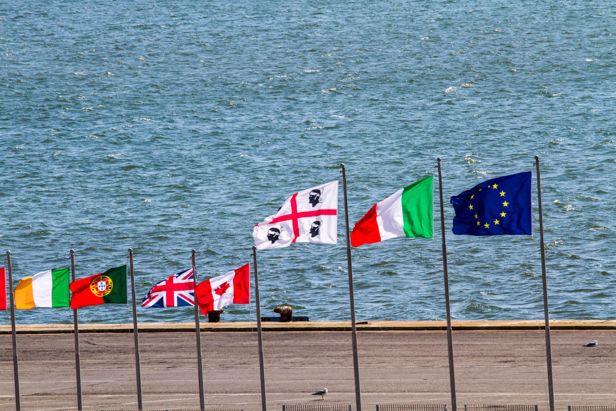 The road surface is filled with potholes, the edges torn up. We finally see the port and navigate toward the Grimaldi ferry we see in the harbor. After some figuring out the process, we find out the check in doesn’t start until 2pm. It’s now noon. So, we continue on to find a seat along the boulevard. Patrick feels like he has caught a cold.
