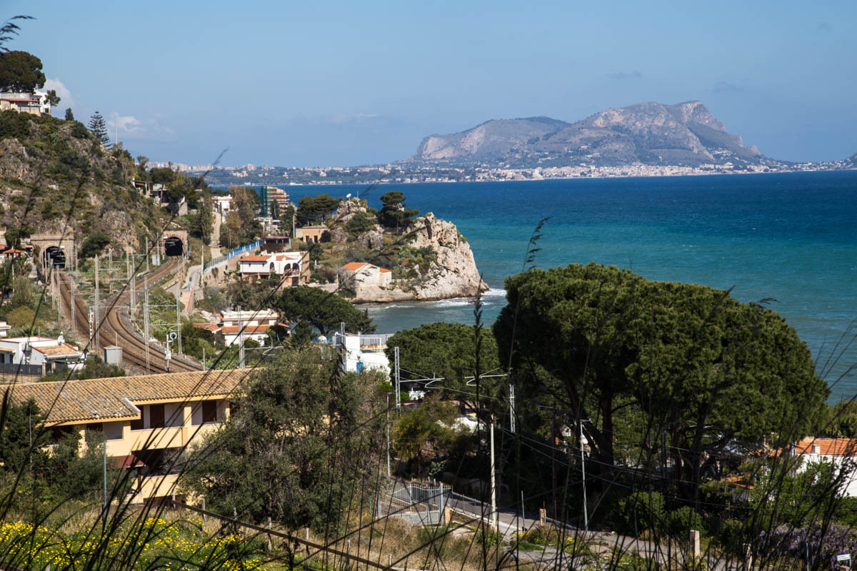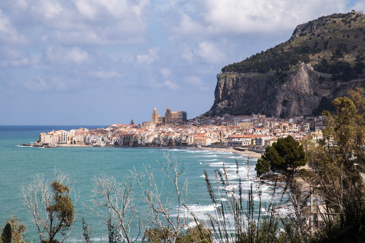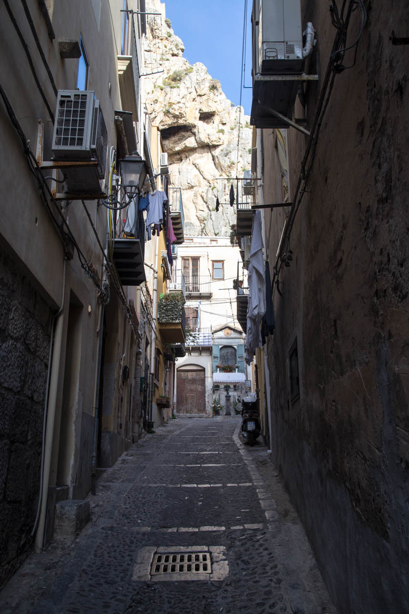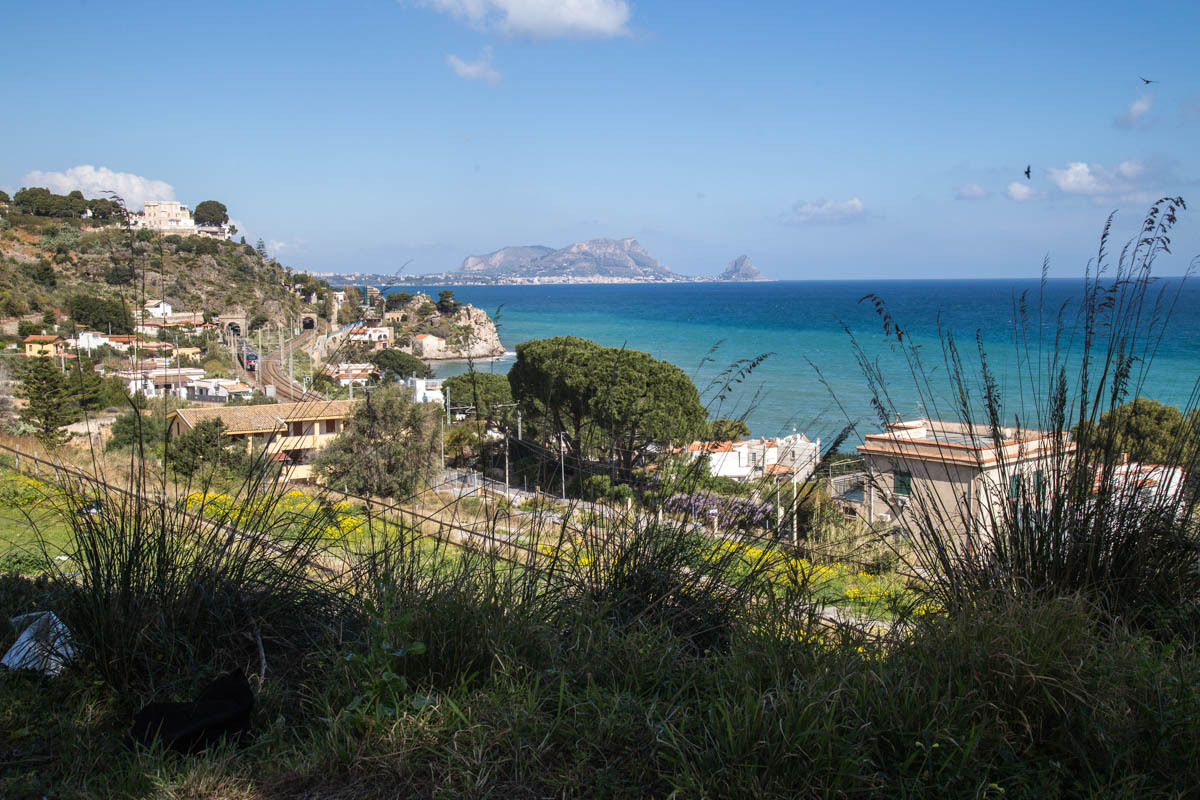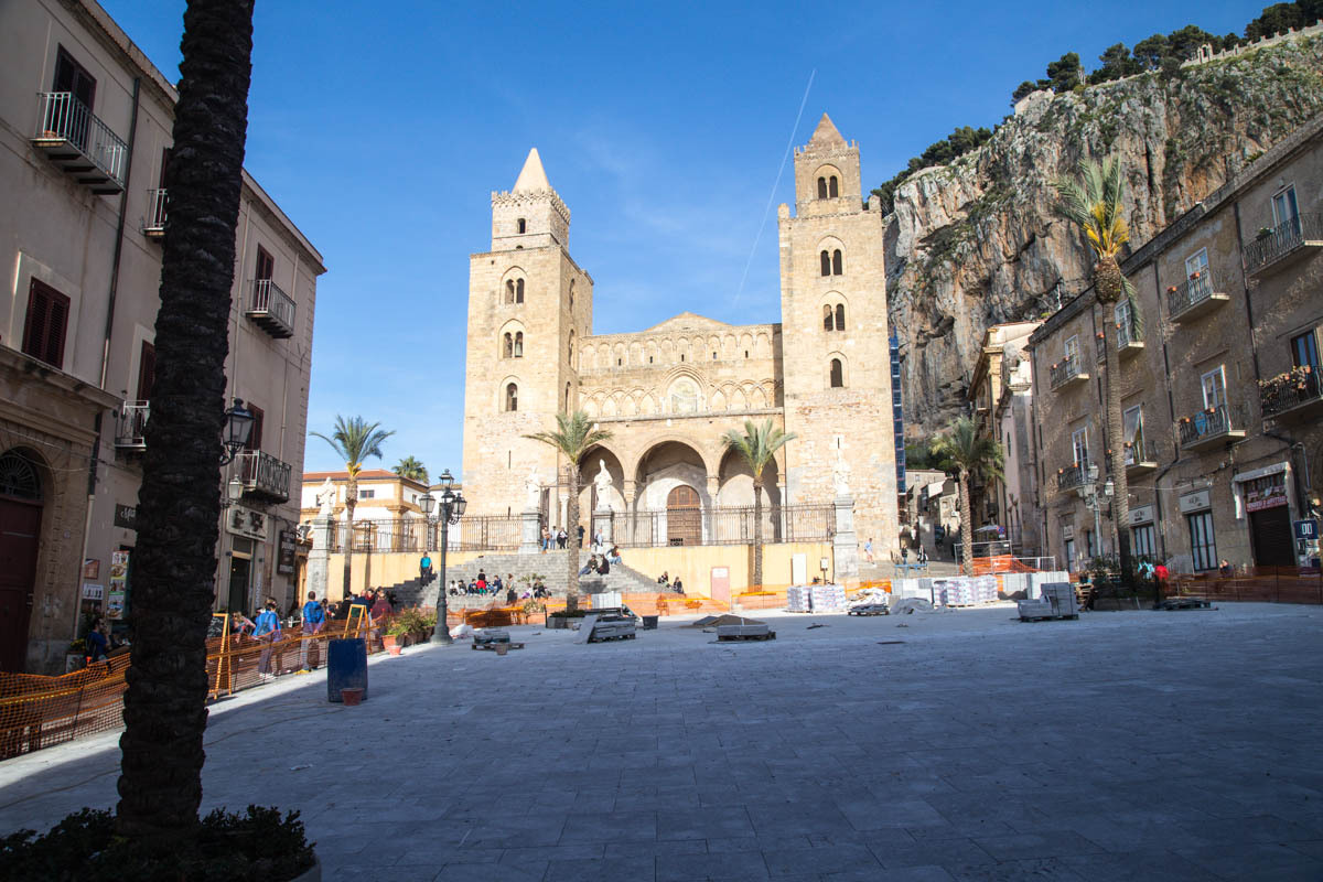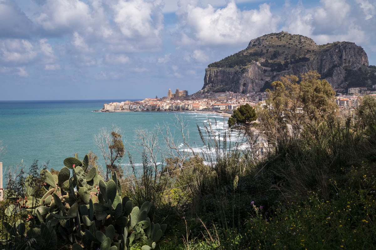 There is a fair amount of climbing today, but no really big hills, just many ups and downs. We make good time though, and right at about two, check-in time at our hotel we get our first view of Cefalu. The town has a spectacular setting along the sea and against a towering rock. The cathedral dominates the skyline. We get some nice panoramas of the town as we ride in closer.