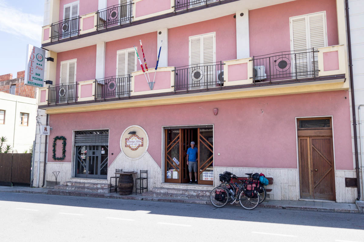 We reach the hotel right at one when check-in starts. There is not much to do in this town, but that serves us just fine. We catch up on internet stuff and read. The restaurant downstairs opens in the evening and serves a good pizza according to online reviews. There is some confusion about us wanting to just share a pizza, so we end up with two the same pizzas. We eat most of it.