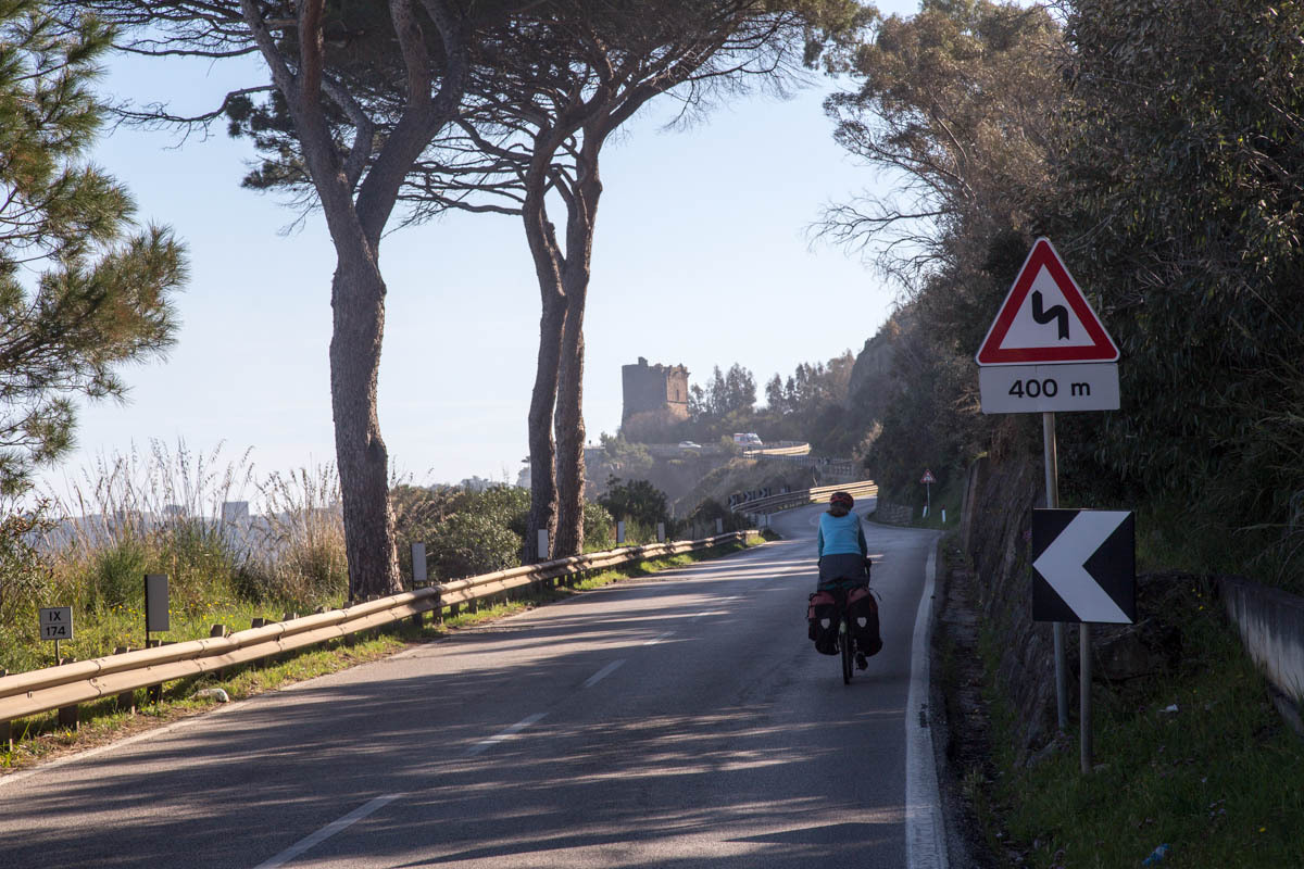 Luckily, we do not have to retrace our steps from yesterday getting into town yesterday. There is a road that skirts around the big rock and follows the coast east. It is a very scenic route, there is a castle, craggy rocks and many hotels, some looking good, some pretty much abandoned