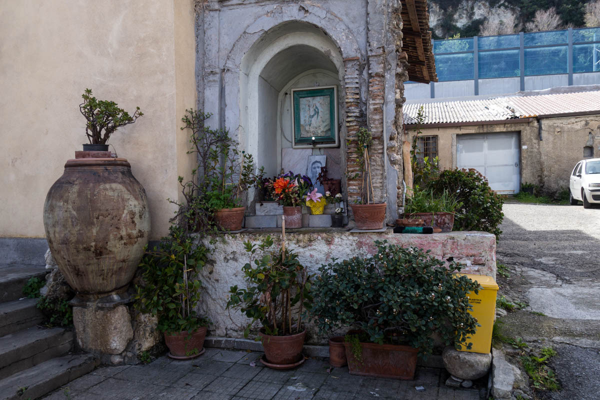 The second section is “miserable” as Rachel says. The road is away from the sea and a continuing stretch of city and nonstop traffic. The streets are lined with badly parked cars, and service trucks stop in the middle of the road, blocking traffic to one lane. We stop for a cappuccino and pastry. This is one of the nicest pastries we’ve had in Italy. Bread and pastry have been a bit of disappointment since the influence of the French in Morocco and Spain.