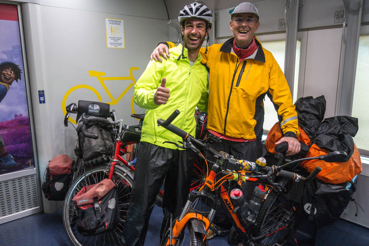 We have great luck with the trains. First train, Manual, an Italian touring cyclist from Milan will be on the same train. He helps us get on and off. He is going further so we say goodbye quickly. We had shared information about previous routes that we have done and exchanged emails. He is a magician, when we were talking about how we met in 1993, he says “that’s the year I was born,” he says with a grin.