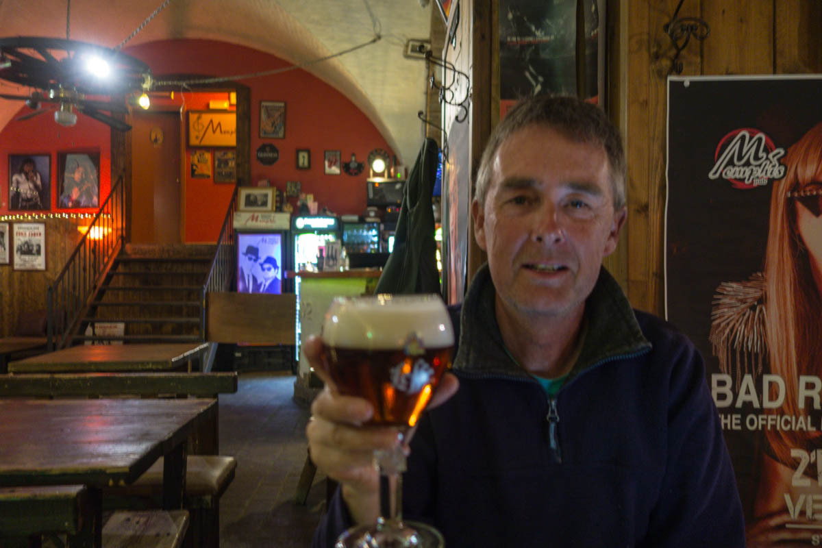 We decide not to cook tonight and walk over to the Memphis Pub. There is a giant screen playing a Pearl Jam Concert, posters around the walls including the Blues Brothers. More importantly, they have quite a few beers on draft, including a Leffe Strong Ale. Very nice! The pizza is good too.