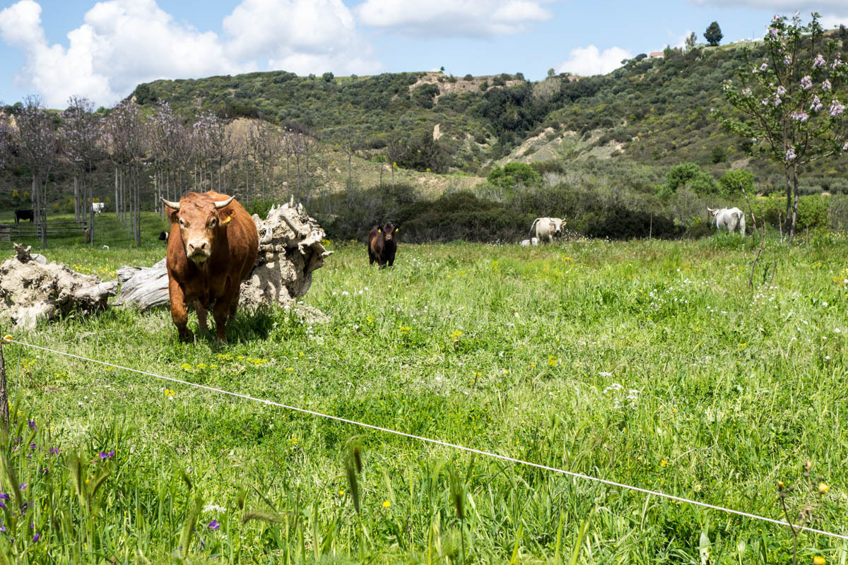 We start again with dealing with the Interstate thing. RWGPS has earned our trust, but it makes us do some strange things. We miss the first zigzag and have to backtrack a bit from a dead-end road. Then there just is no way to get through and we are guided inland about 10km, climbing our first two hills before returning to the Interstate. The detour is nice though, we see lots of fruit farms: lemons, oranges, jasmine, and strawberries. What choice would we have made if the interstate did not keep us from following the coast uninterrupted? Would we have chosen the more difficult hills by going inland?
