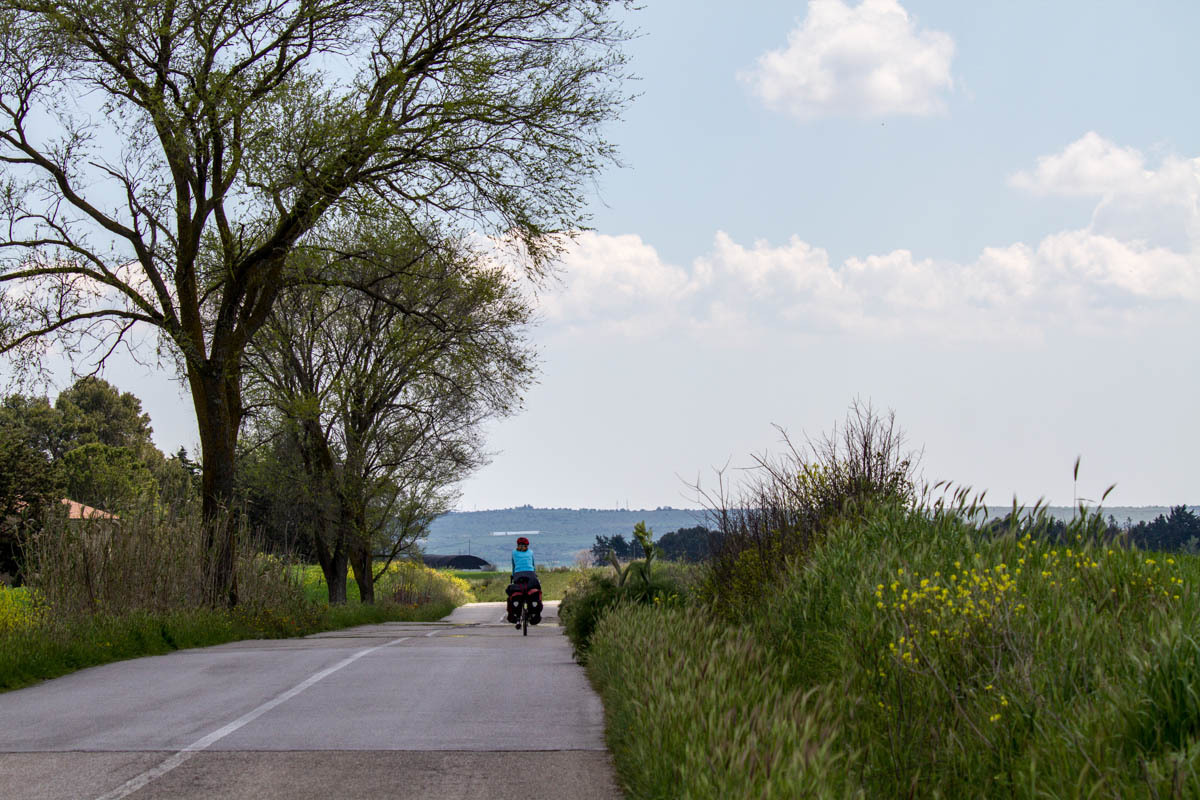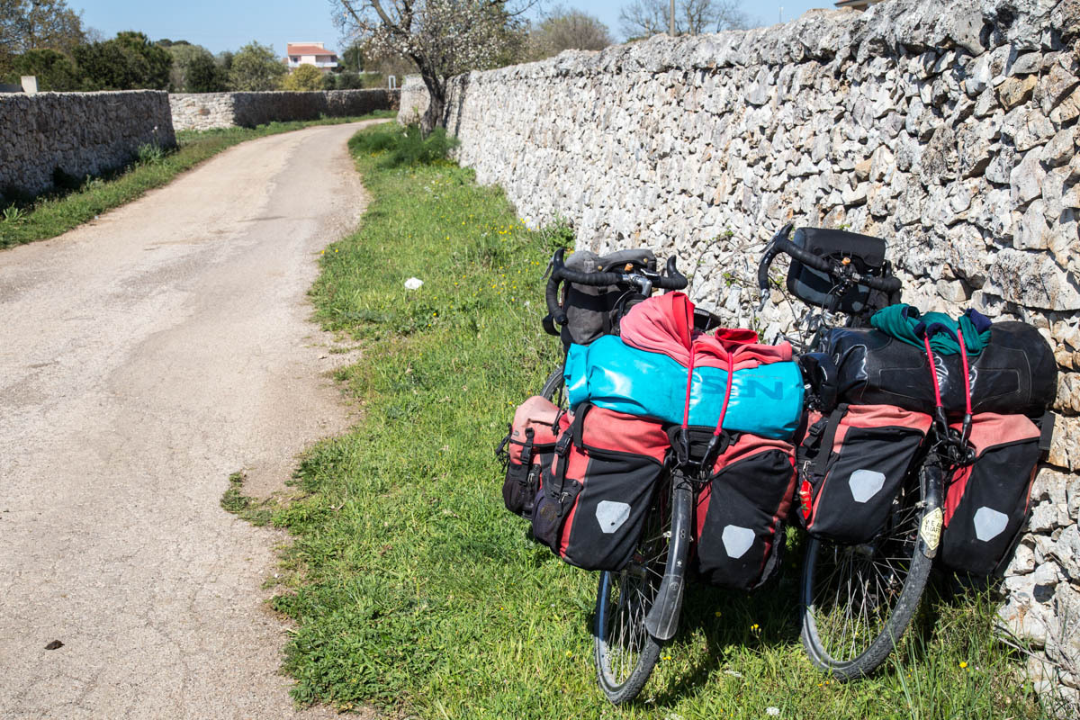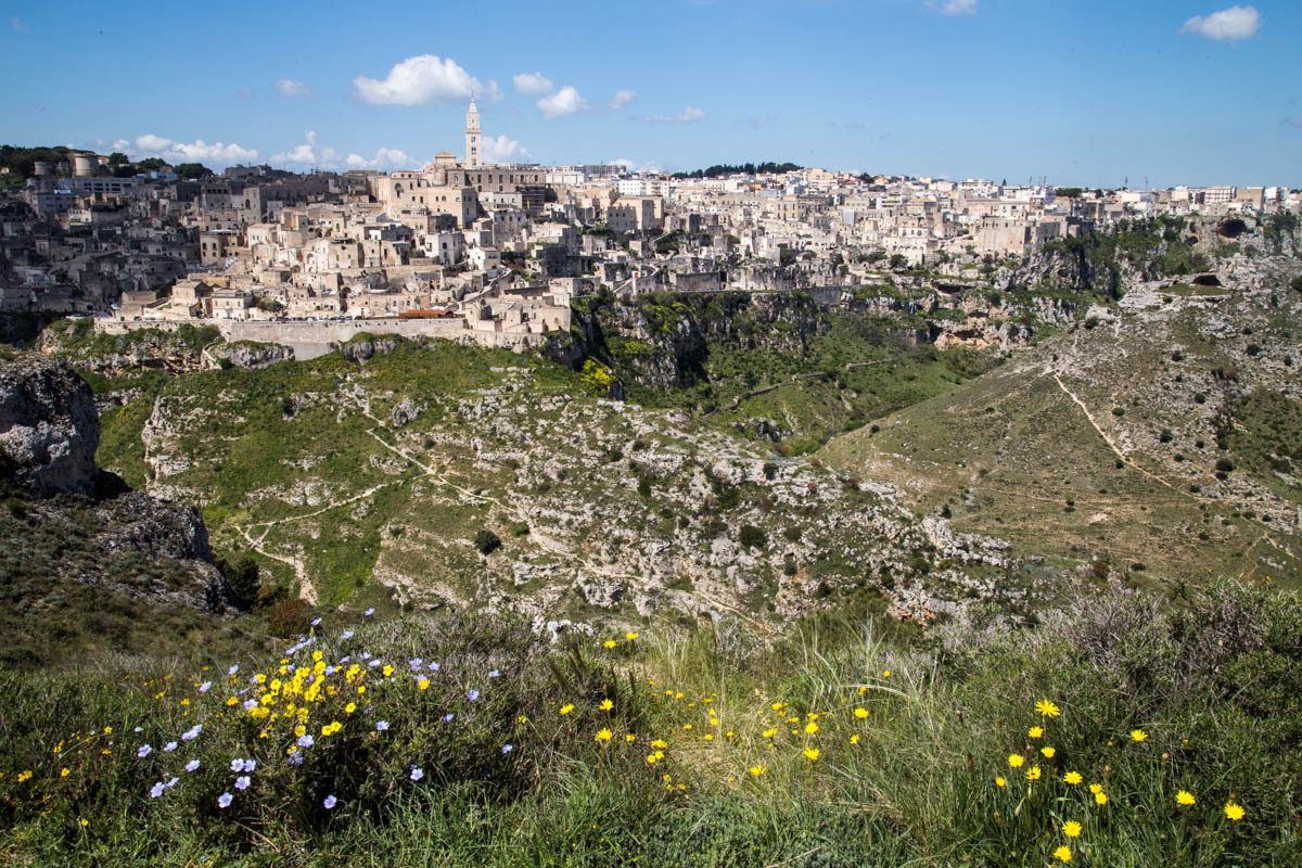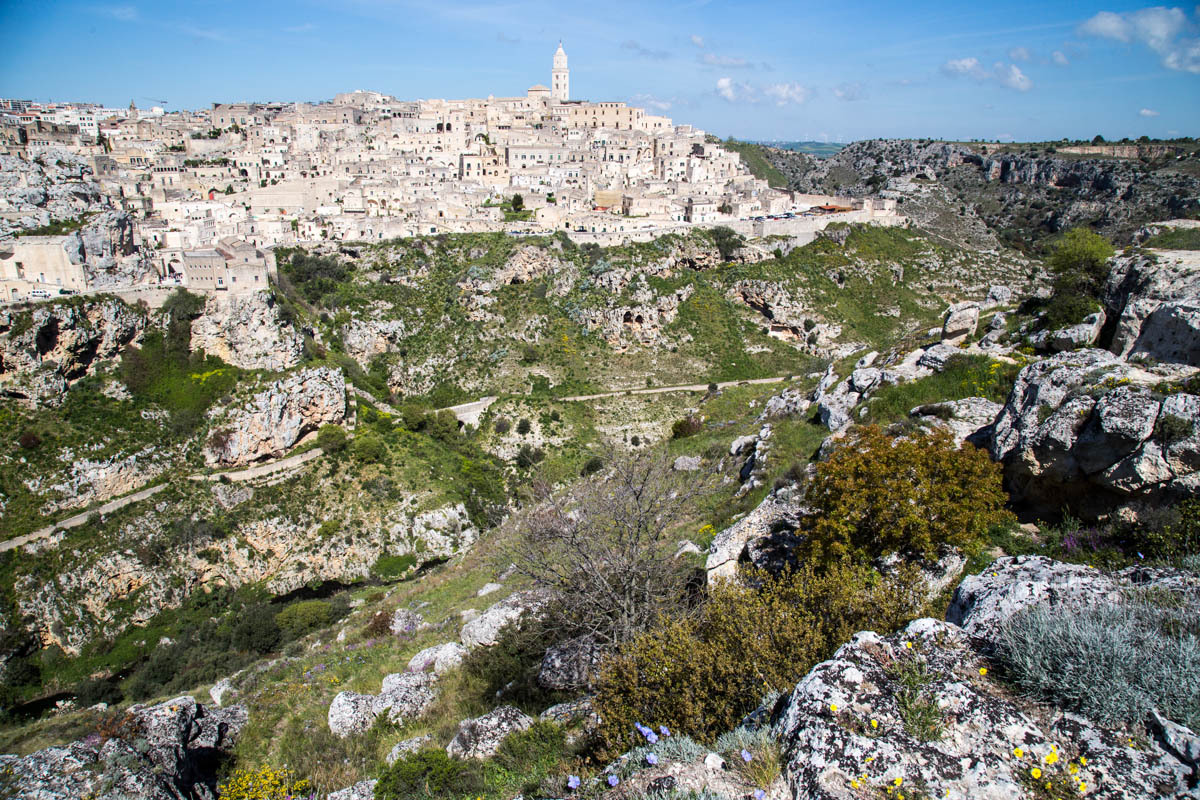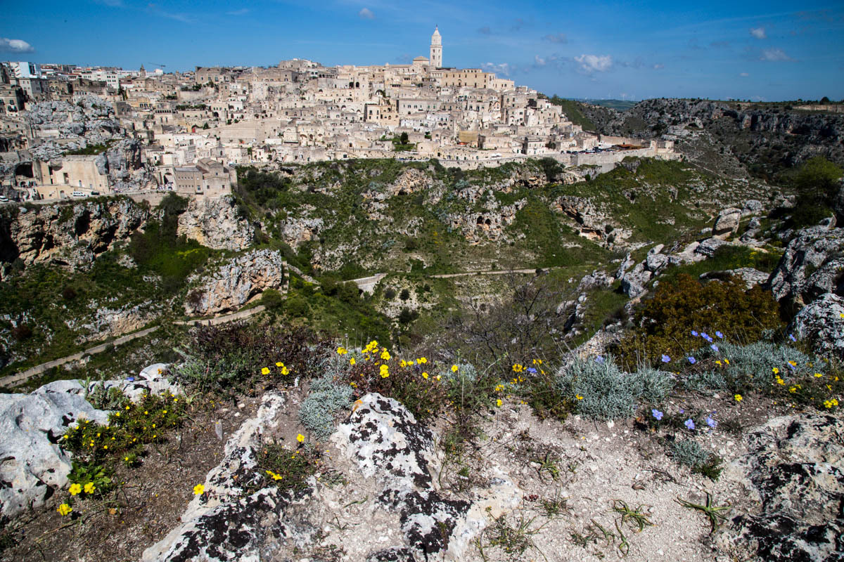 Then a significant hill up to the viewpoint across the ravine from Matera. We take turns walking the paths so one of us can watch the bikes. We plan to hang out here for a while, enjoying the view and eating a sandwich for lunch.
