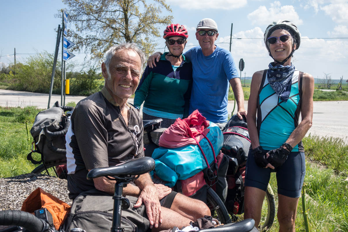 Then we see them coming! It's so much fun to finally meet!! In 2021, they were riding from the midwest to the East coast Road to Rome: Part One America while we were riding the Northern Tier. We thought that there was a chance we might meet then. We have so much in common, besides biking, journals on Cycleblaze, we have the same wedding anniversary date and Rachel's/Rachael's same nickname Rocky.