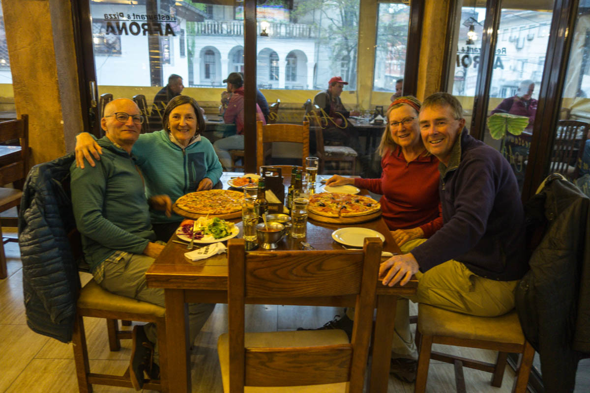 We all walk to the city center for dinner and later say good night. We will get our bikes out of the garage in the morning at 7am. So we will see them then before going separate routes.
