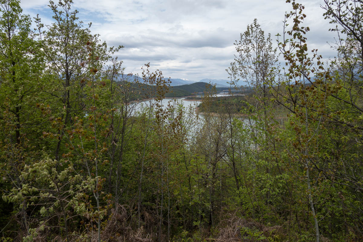 The road is relatively flat until km 36 then a downhill mostly flat until km 50 when we get the first of three hills. We see the reservoir that we will follow into Debar. At the start of the hills, Patrick becomes a Sherpa and takes the bag with the sleeping bag to carry instead of Rachel. The sky has dark clouds and we begin to doubt the forecast is no rain. We reach the top of the last hill on the edge of town.