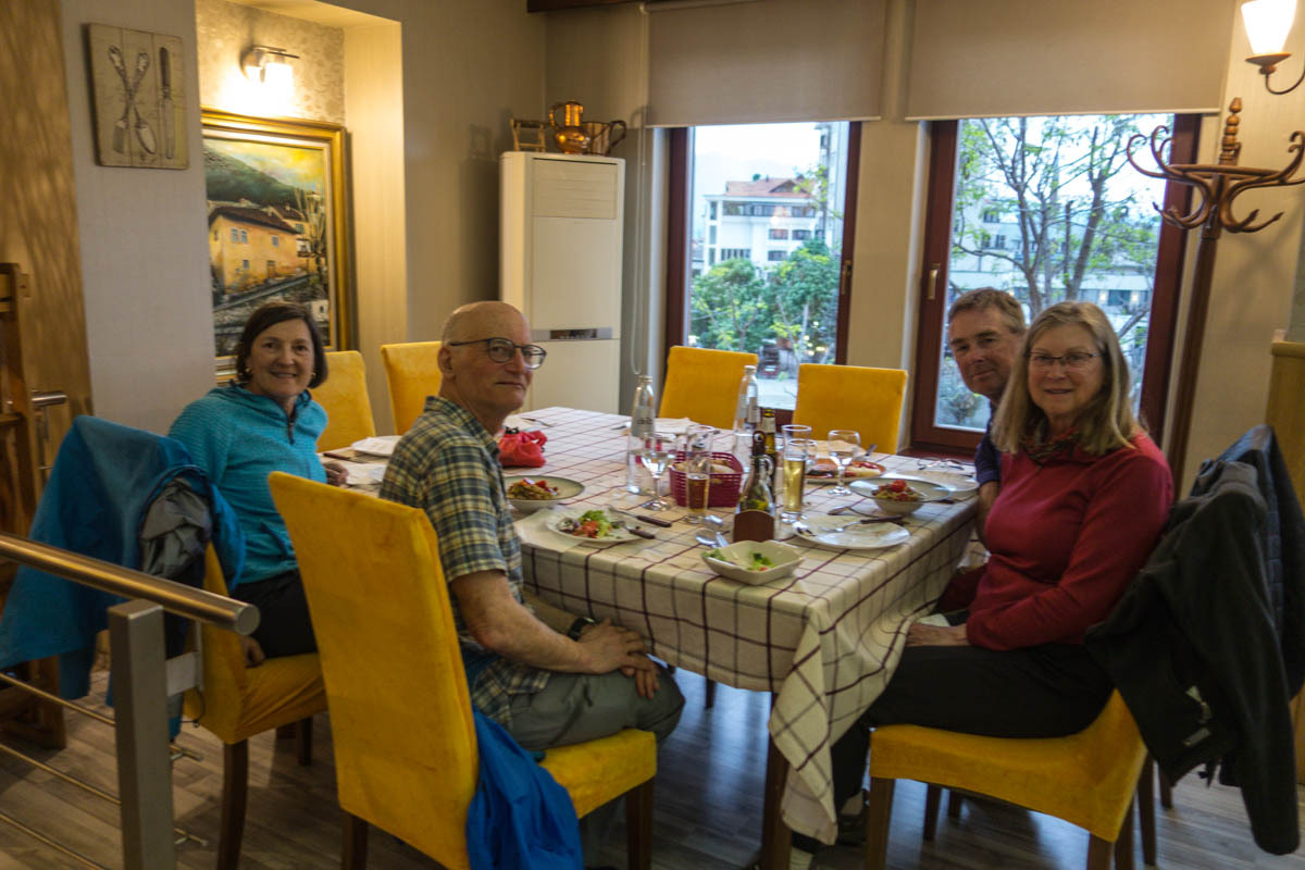 We send an email to Todd and Luciana that we have arrived. After a hot shower and settling in, we walk to the café they are in and have a coffee and cheesecake. We arrange to meet for dinner, they are in the room next to us, by “meeting at the doors at 6”. We then take a short walk around the nearby streets, find milk for breakfast, and a cold drink of lemonade.