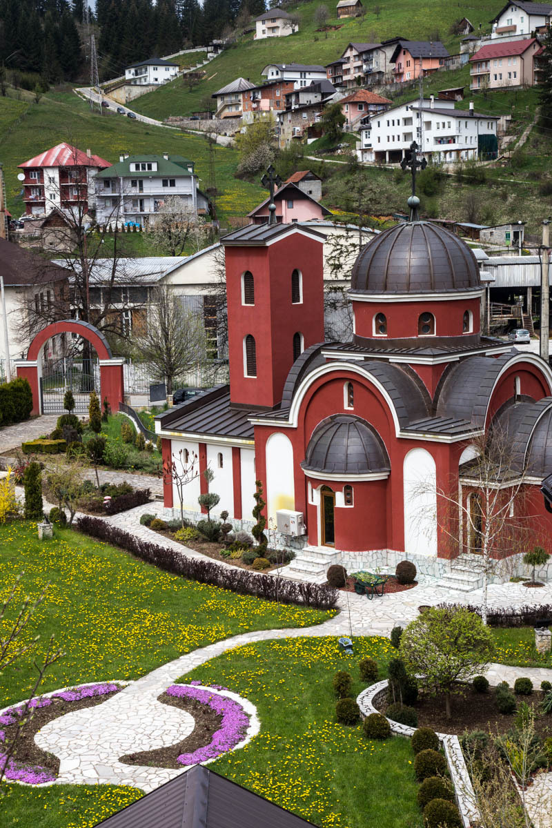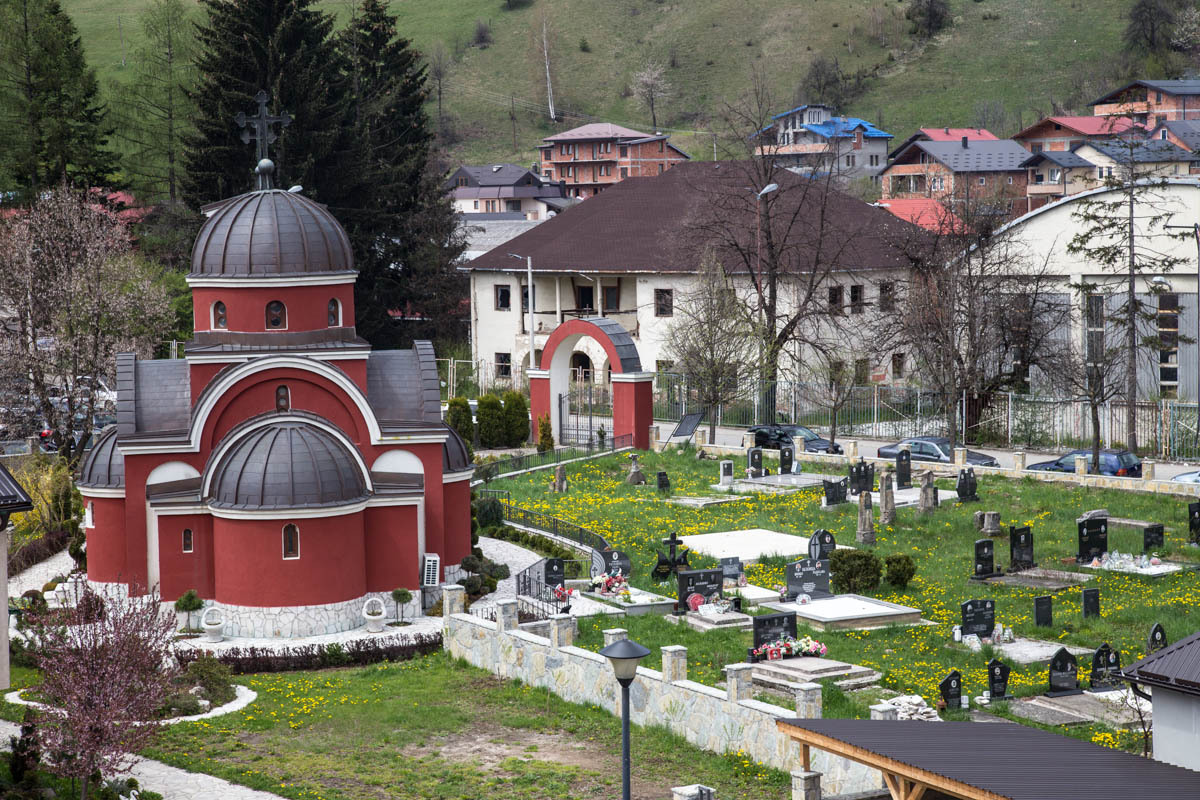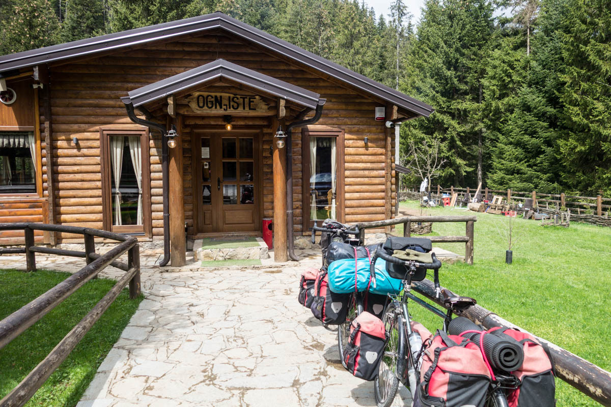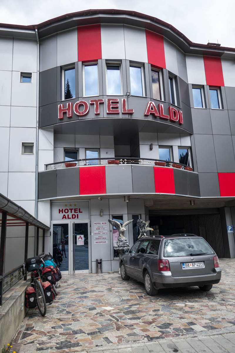 The downhill is continuous, then through nice looking Rozaje to the Aldi Hotel on the edge of town. All our stuff gets hauled up to the third floor, the bikes in a parking garage downstairs. There is a grocery store just down the street for refreshments. We arrive at noon and can take the afternoon to catch up on internet stuff.