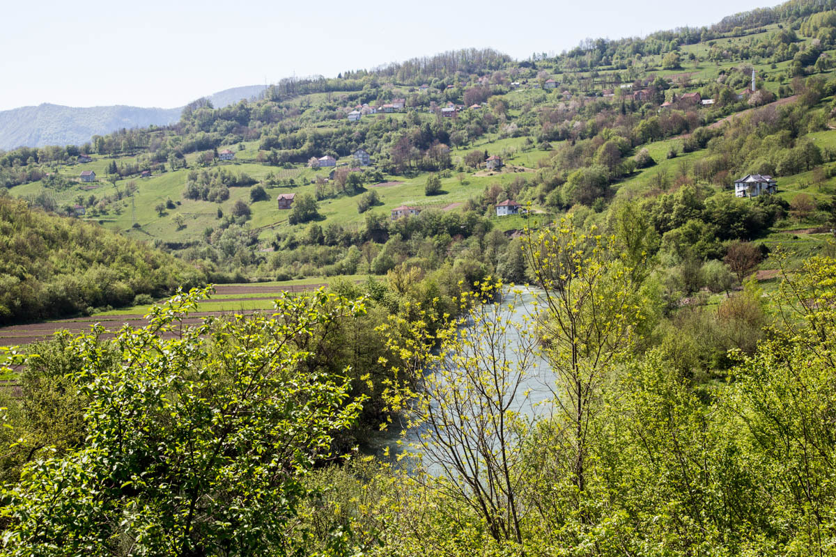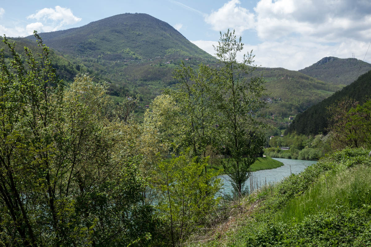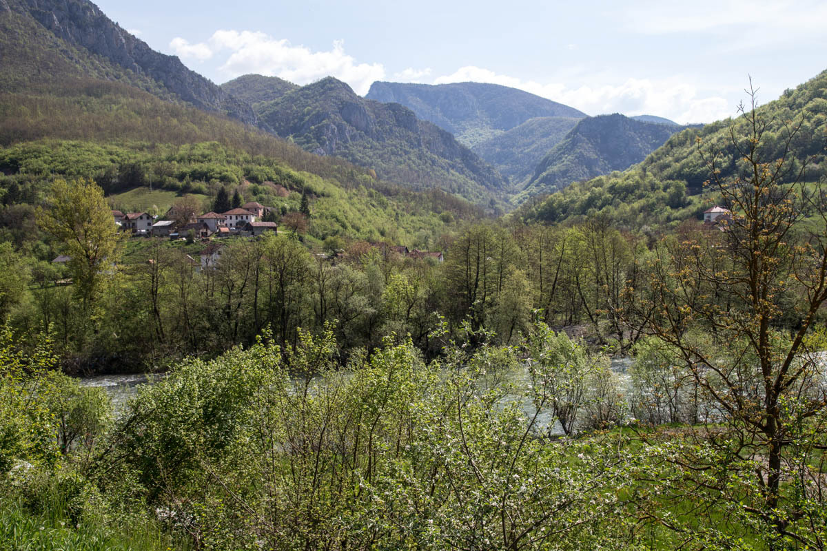 Today is warmer than it has been for a while, there are thunderstorms in the forecast and more rain later this week, but so far the sky is blue and the sun warm. The valley is very green, the hill sides are dotted with houses, mostly small farms. The Lim river is running pretty high, but judging by the trash stuck to the trees it can run a lot higher. As we saw in all other Balkan countries trash is still chucked at every convenient pull-out; big piles of it that get set on fire every so often. Enough trash talk.