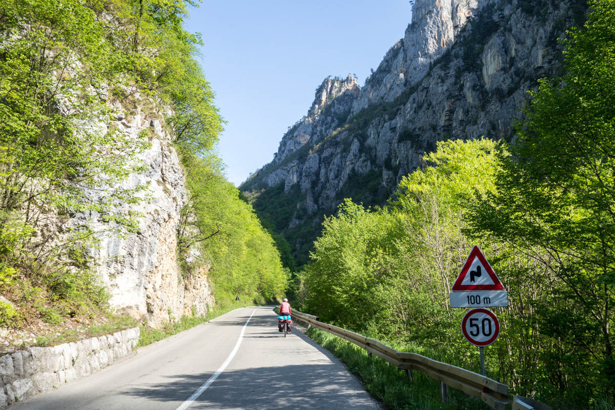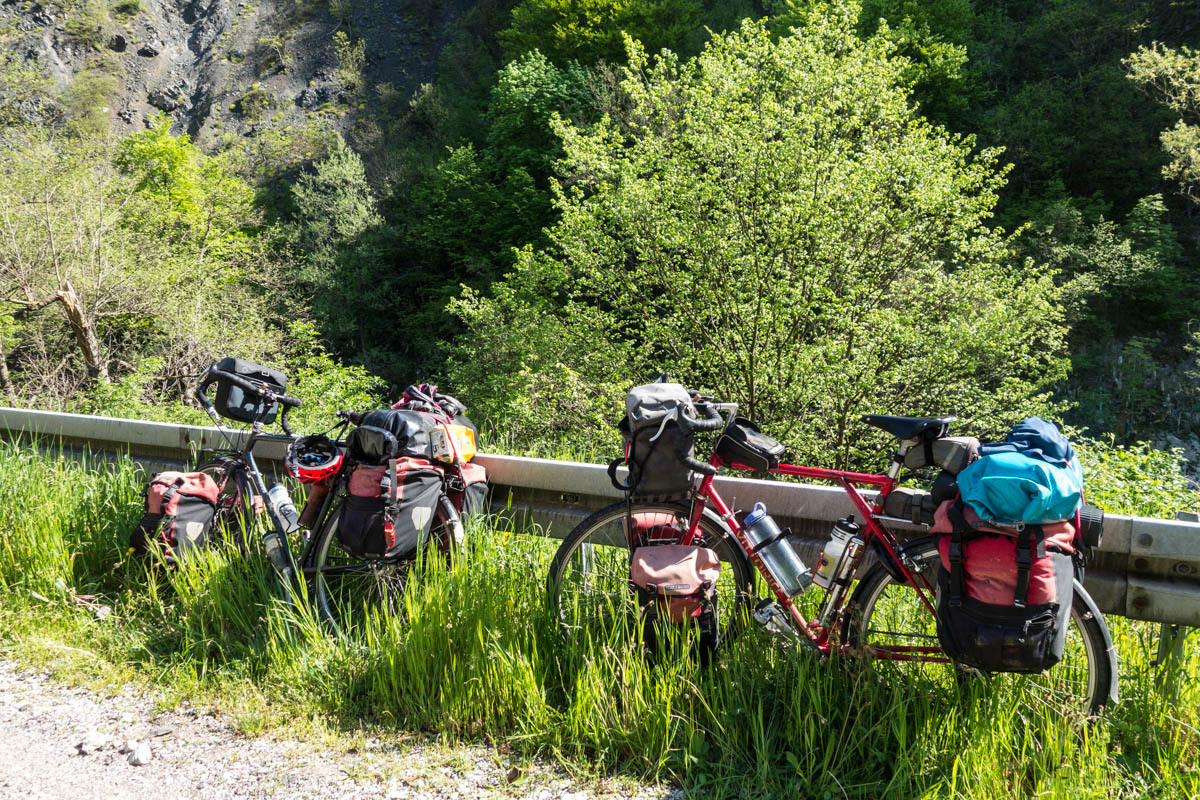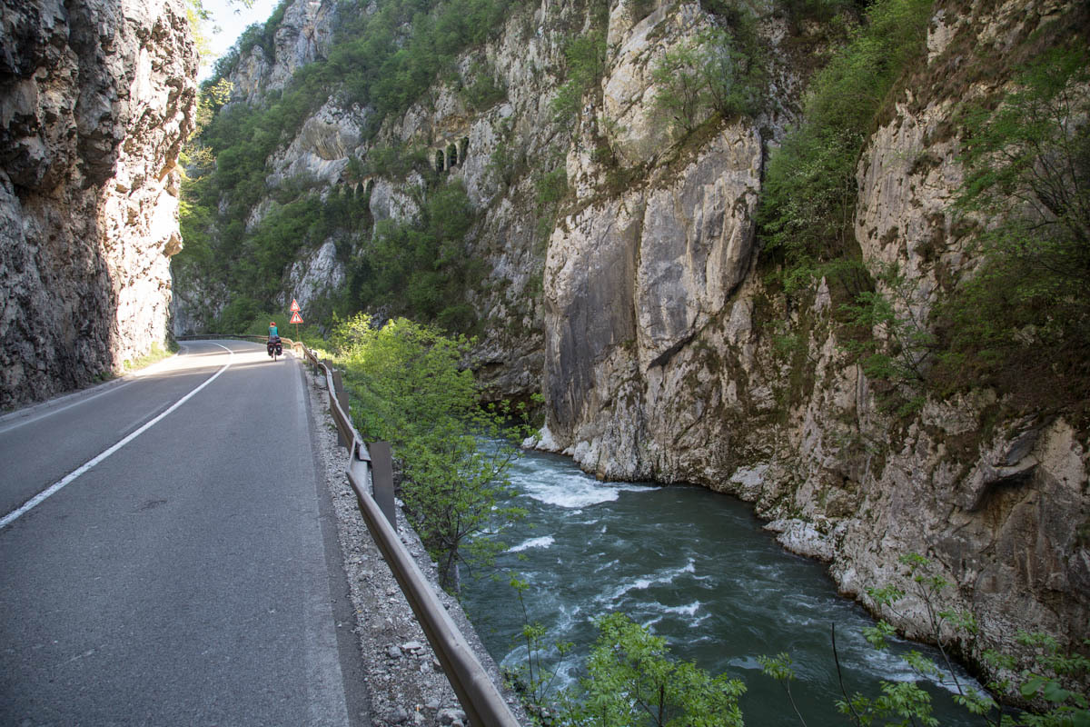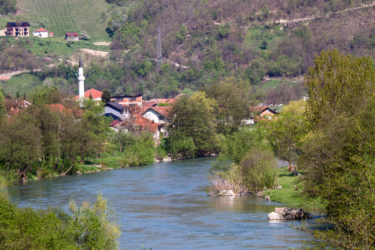 Today is warmer than it has been for a while, there are thunderstorms in the forecast and more rain later this week, but so far the sky is blue and the sun warm. The valley is very green, the hill sides are dotted with houses, mostly small farms. The Lim river is running pretty high, but judging by the trash stuck to the trees it can run a lot higher. As we saw in all other Balkan countries trash is still chucked at every convenient pull-out; big piles of it that get set on fire every so often. Enough trash talk.