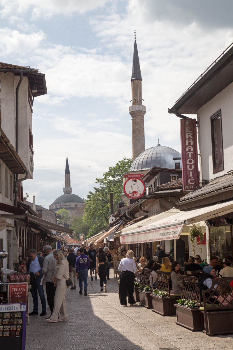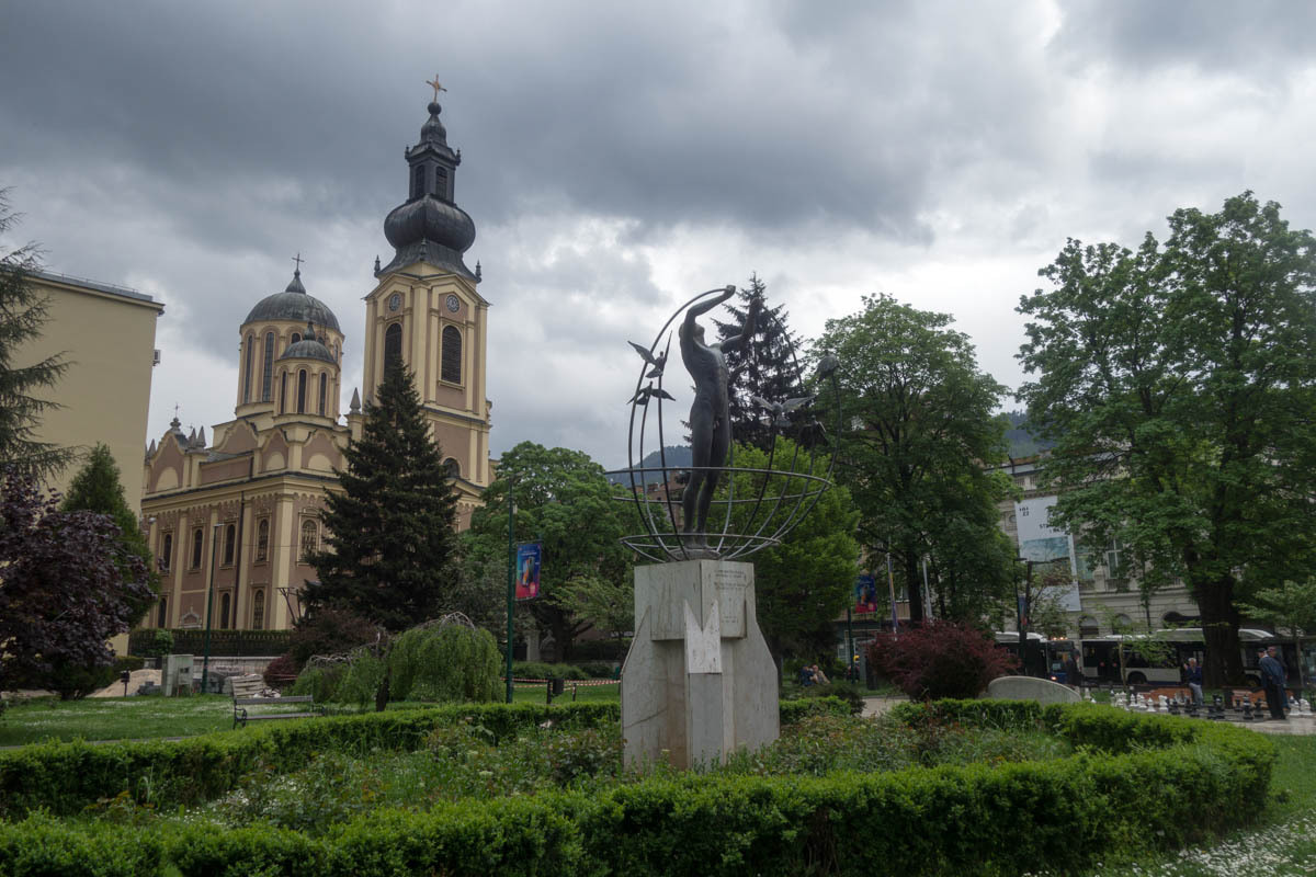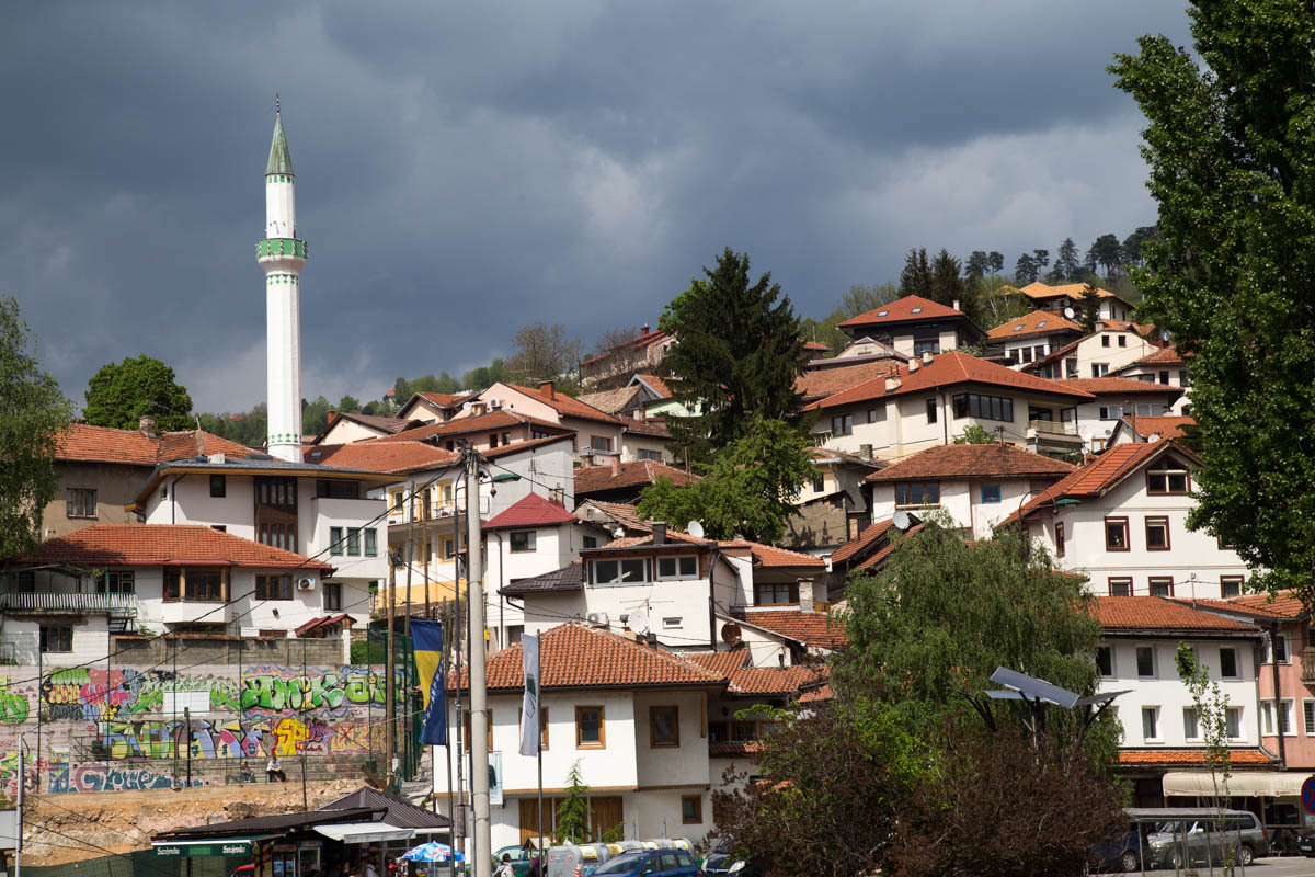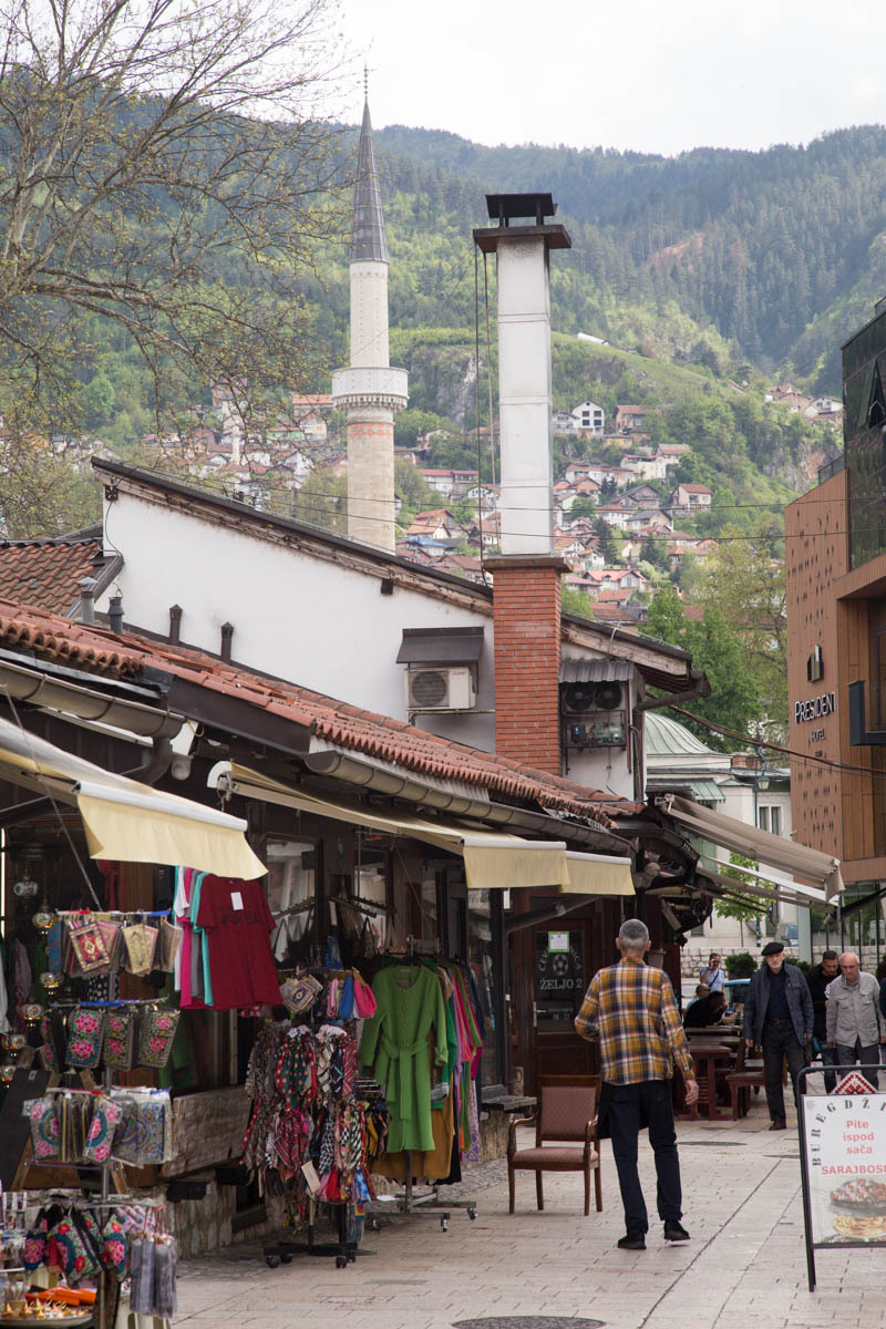 The rain has let up, there is even some sunshine. Since the forecast for our next two days in Sarajevo is rainy we decide to take advantage of the weather now and go for a walk around town. The eastern side where we are at is Ottoman and Muslim, the western side is Austro-Hungarian and Christian.
