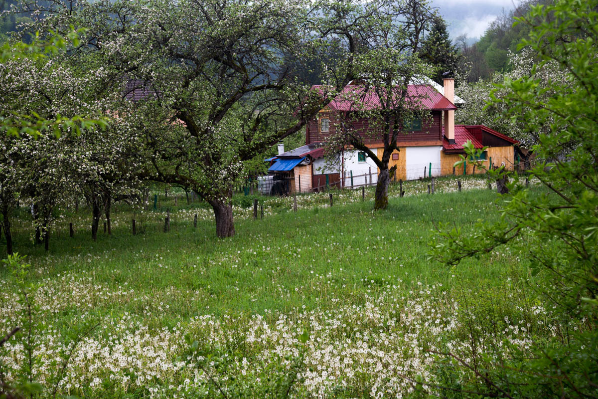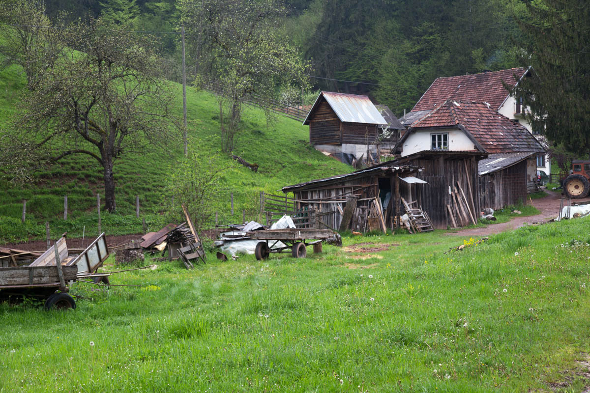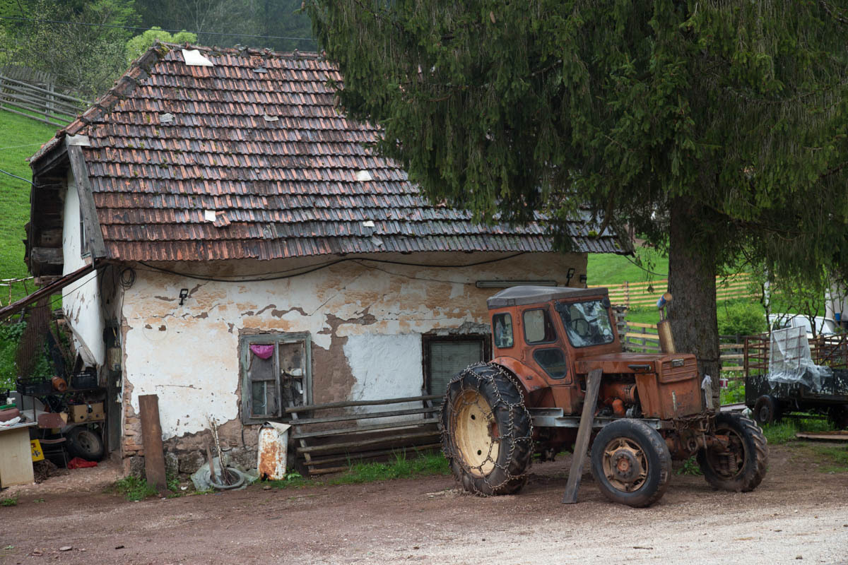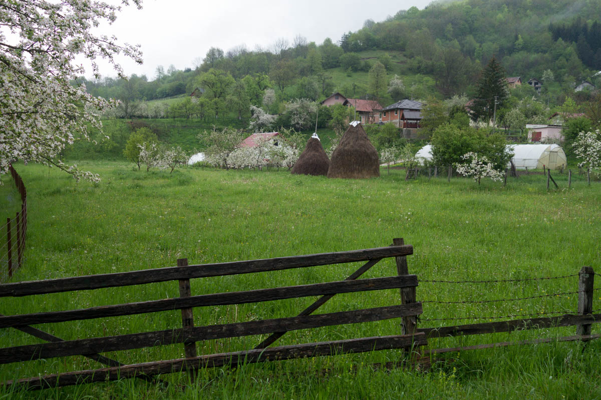 The road follows the boundary between the Federation of Bosnia and Herzegovina and the Republika Srpska, the two entities that make up Bosnia Herzegovina. We first think people in the Republika Srpska are flying the Russian flag, but the colors are reversed.