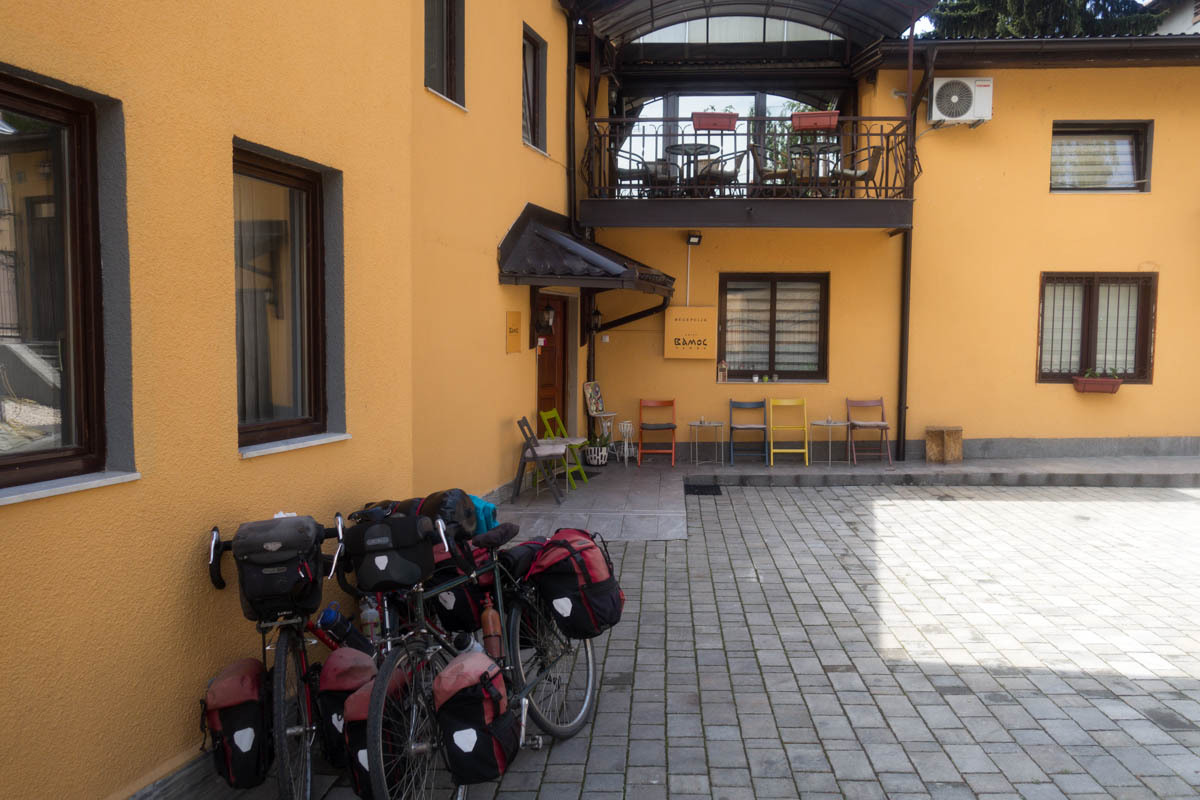 Our hotel is on the east side of Sarajevo and very easy to access for us. It looks like a funky place, painted a peach color with small rooms but a nice common area. The bikes are locked in a garage and the hotel staff takes care of a large pile of smelly laundry we have produced since Peje. For 10Euros the hotel staff washes, dries and folds the clothes.