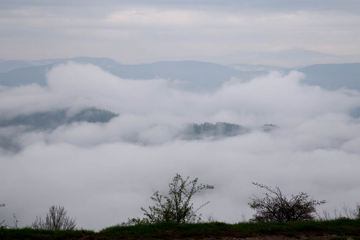 We awaken to a downpour. However, by the time we finish the hotel breakfast and load the gear and bikes into the car, the rain has stopped. There is fog high in the mountains.
