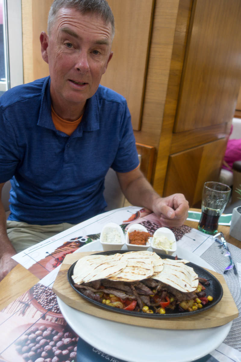 We are surprised by how many tourists are in town. There are restaurants everywhere, we settle on a place that gets good reviews for their authentic fajitas. Not quite the same as Andrades in Boise, but pretty good.